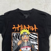 ■NARUTO 疾風伝 うずまき ナルト ラーメン一楽 キャラクタープリントTシャツ アニメ メンズM 古着 漫画 黒【Tシャツ】/ブラック