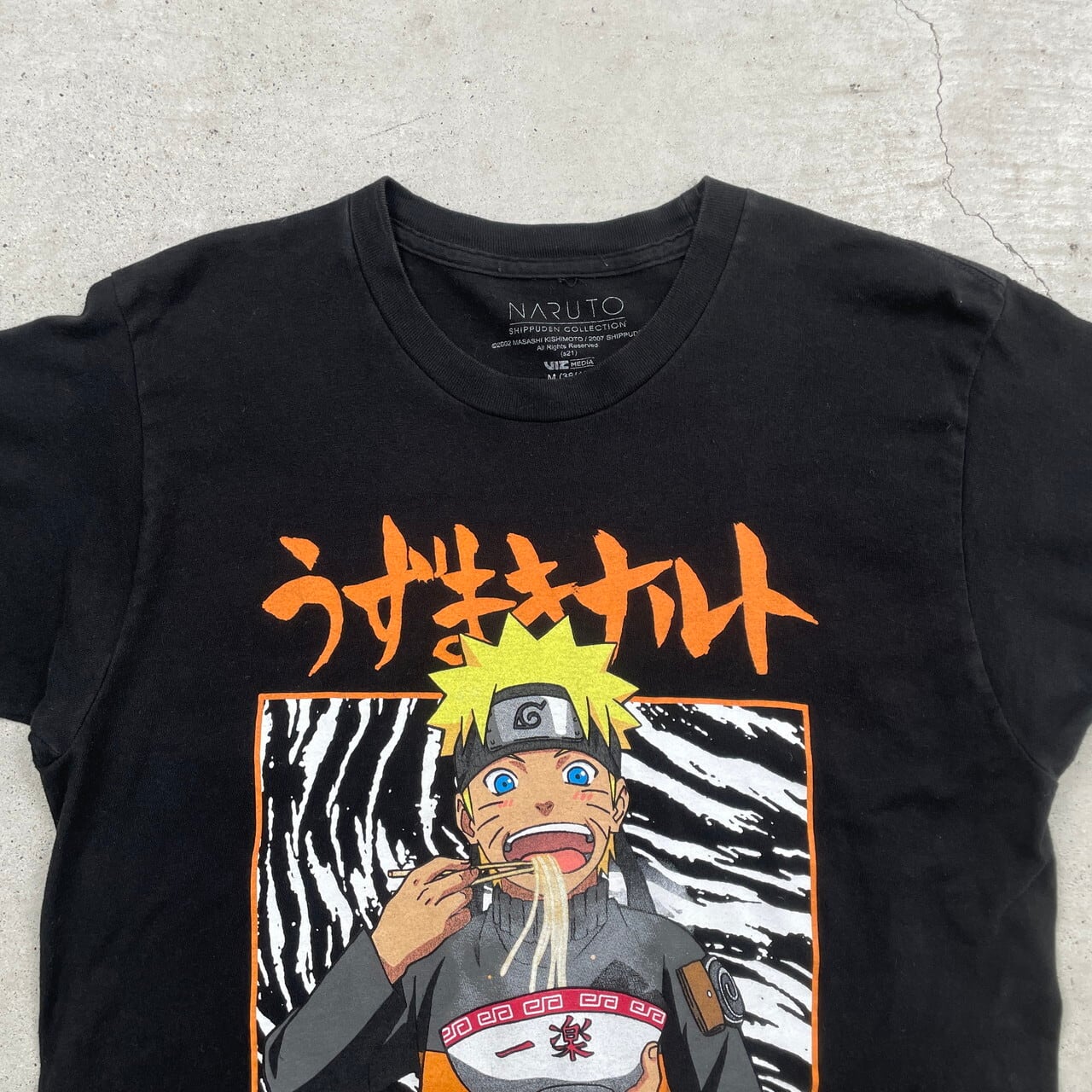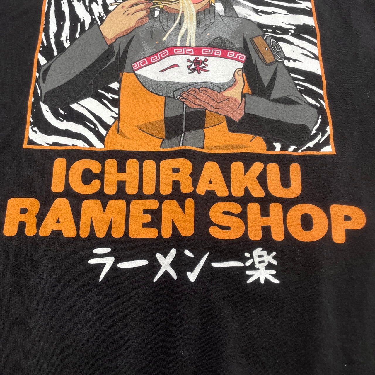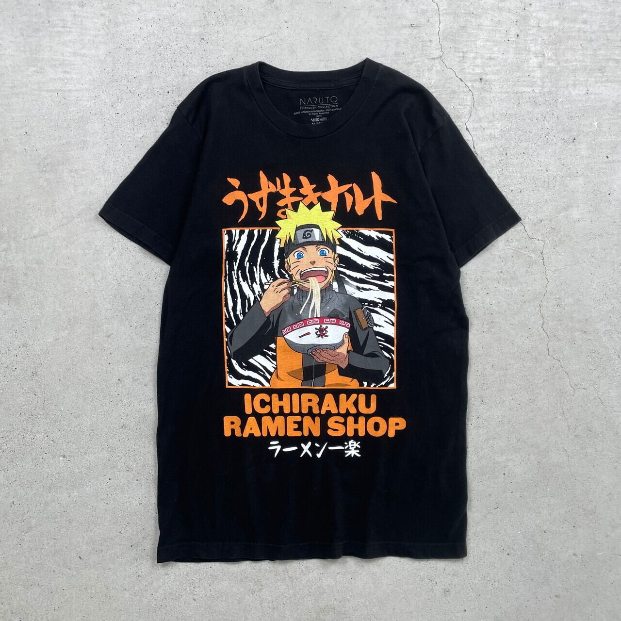 NARUTO 疾風伝 うずまき ナルト ラーメン一楽 キャラクタープリントTシャツ アニメ メンズM 古着 漫画 黒【Tシャツ】/ブラック【SA2501-50】
