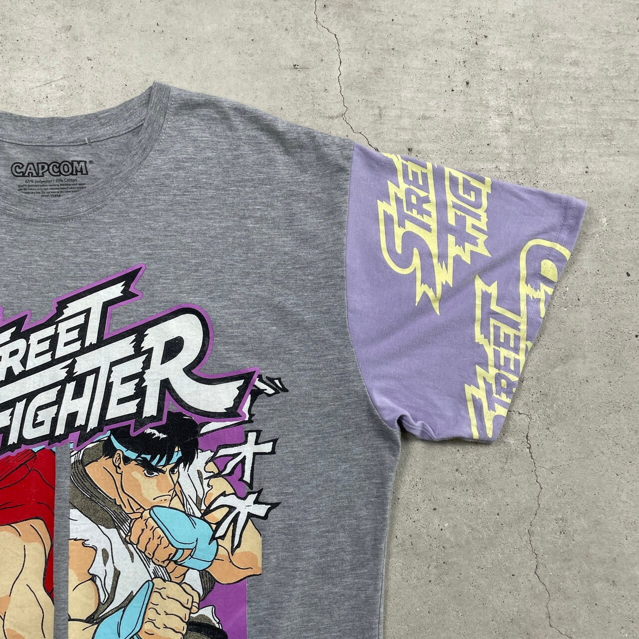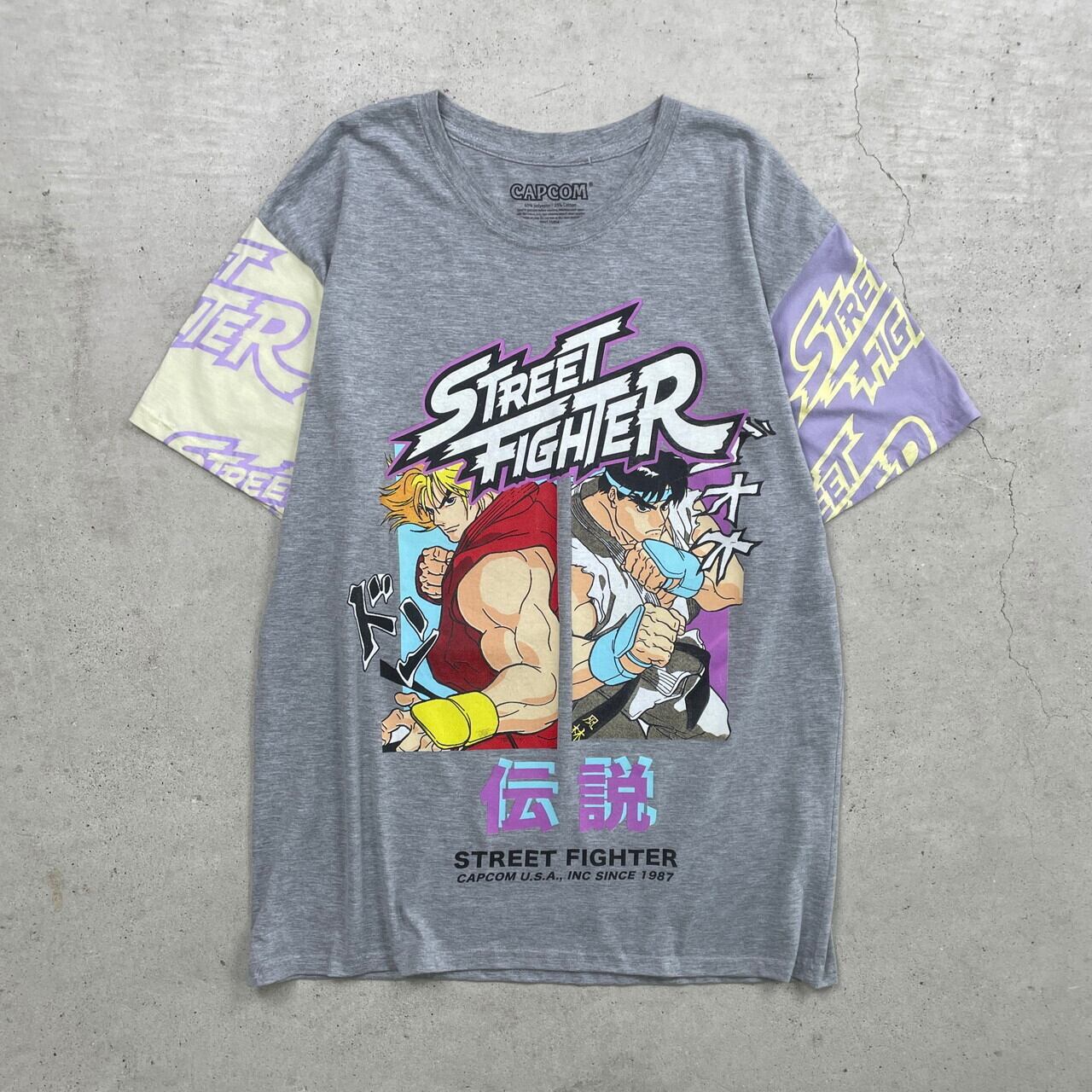 STREET FIGHTER ストリートファイター ゲーム キャラクタープリントTシャツ CAPCOM メンズ2XL 古着 リュウ ケン カプコン 袖切り替え 灰色【Tシャツ】/グレー