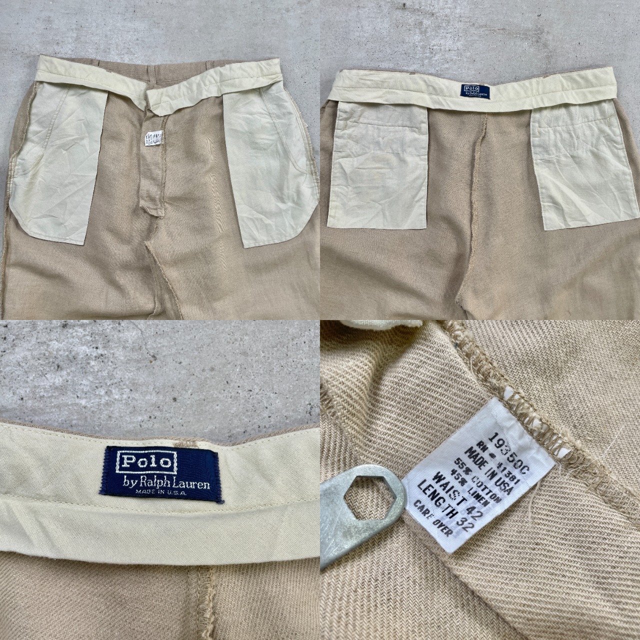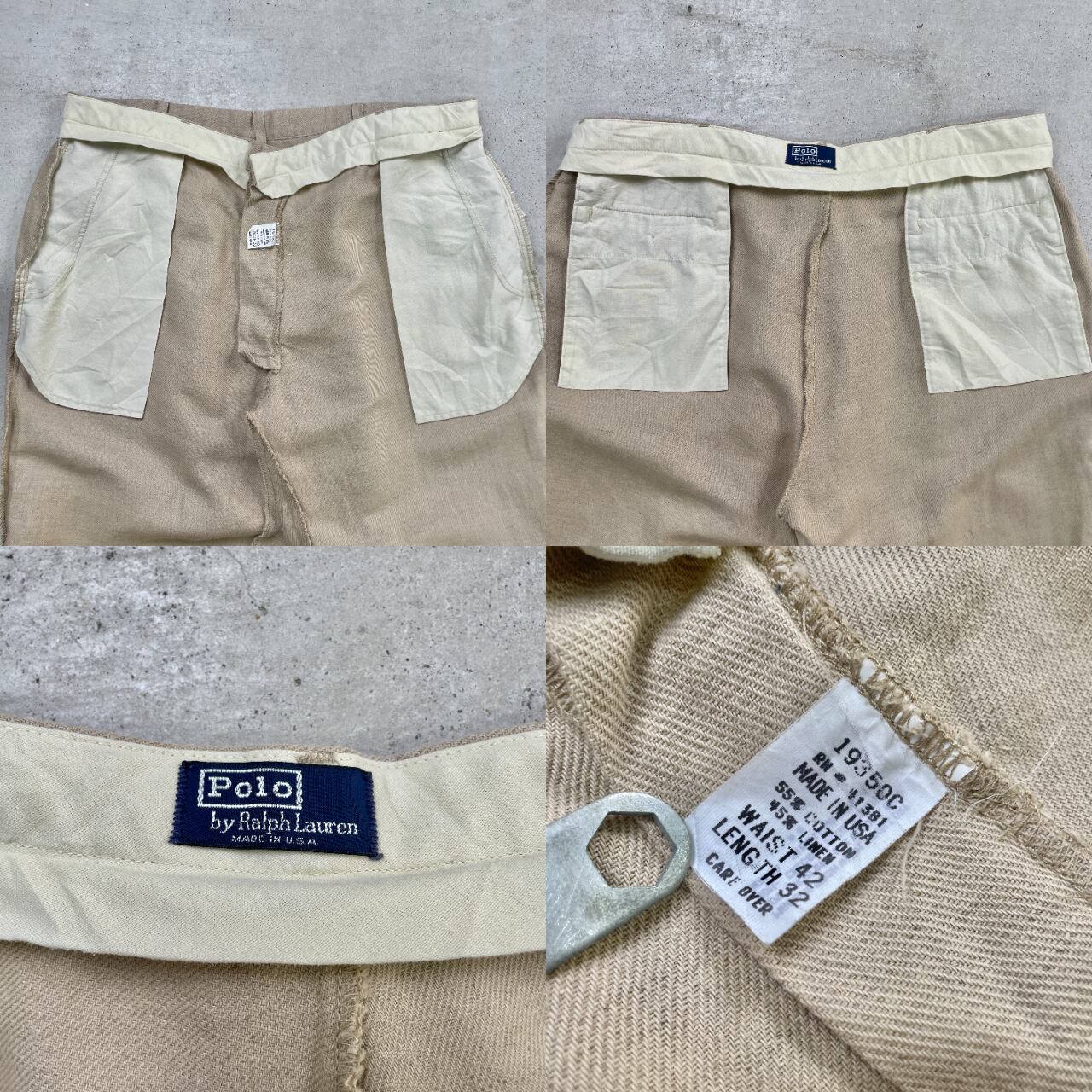 90年代 USA製 Polo by Ralph Lauren ポロバイラルフローレン コットン×リネン スラックスパンツ メンズW42 古着 90s VINTAGE ヴィンテージ ナチュラルカラー ビッグサイズ 大きいサイズ【スラックス,スタプレ】/ベージュ