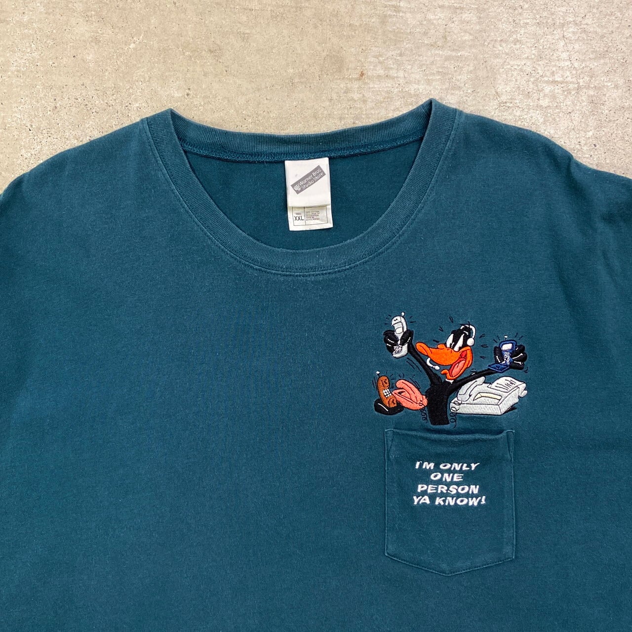 ■00年代 LOONEY TUNES ルーニーテューンズ ダフィー・ダック キャラクター刺繍 Tシャツ メンズ2XL 古着 00s Y2K WARNER BROS ワーナーブラザーズ 【Tシャツ】/グリーン