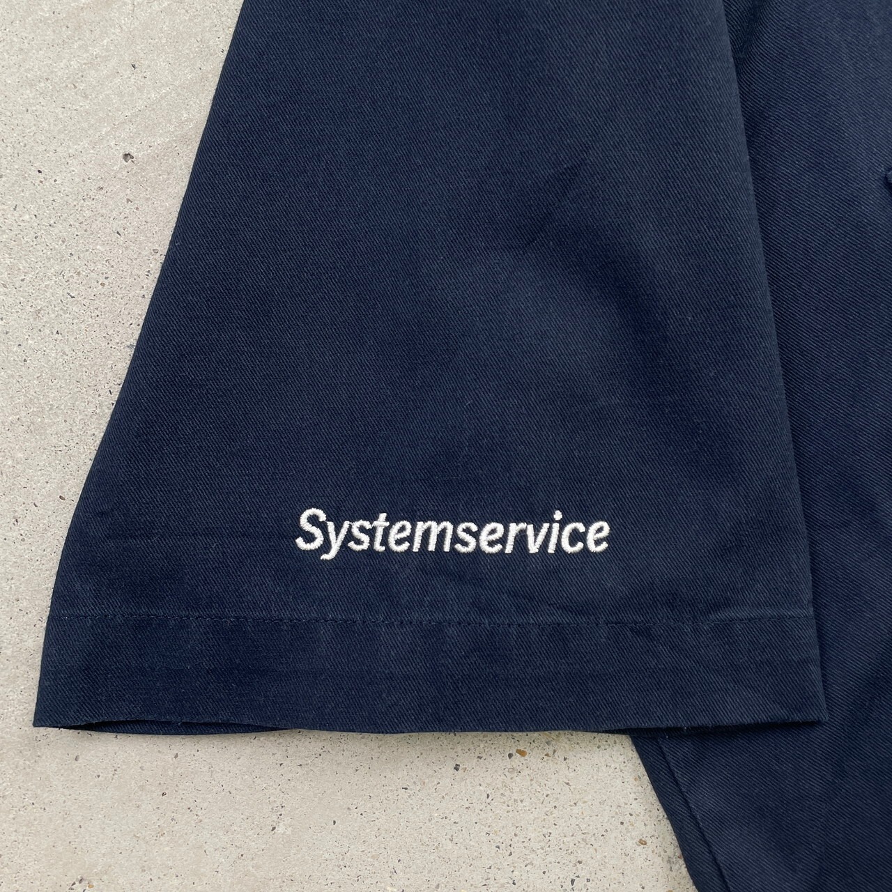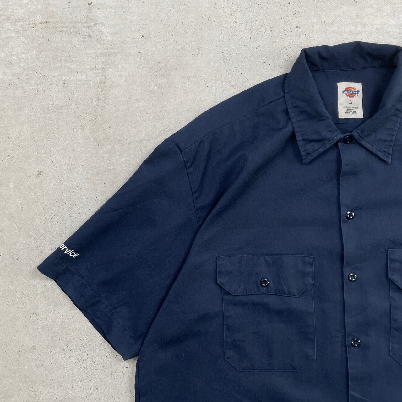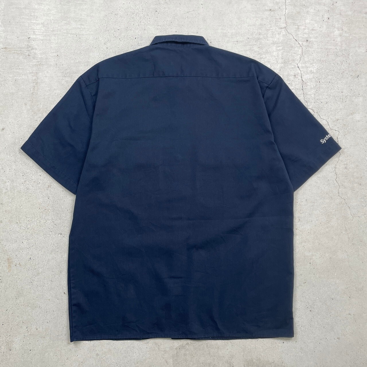 Dickies ディッキーズ 半袖 ワークシャツ 企業ロゴ刺? メンズL 古着 紺色 【半袖シャツ】/ネイビー【SA2501-50】