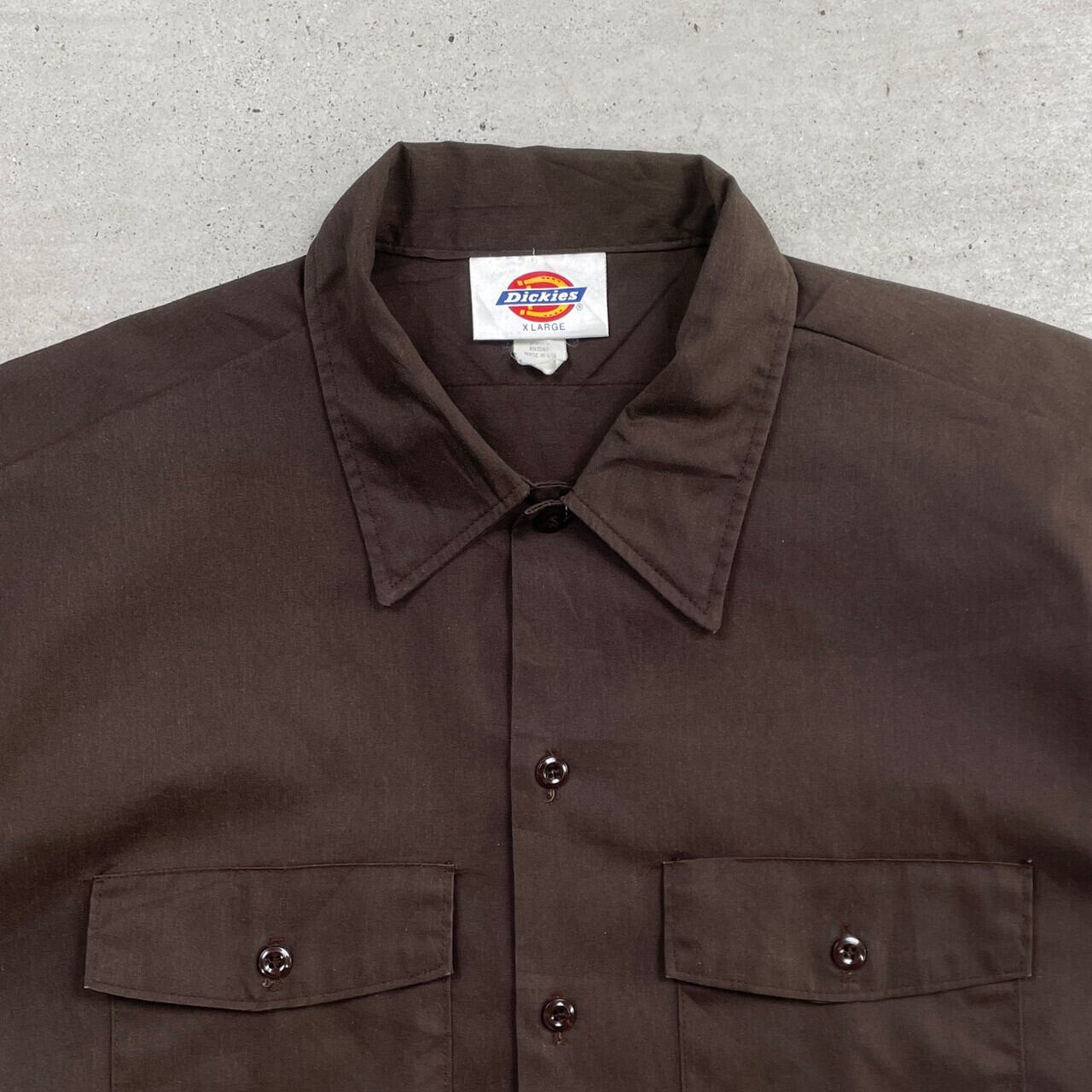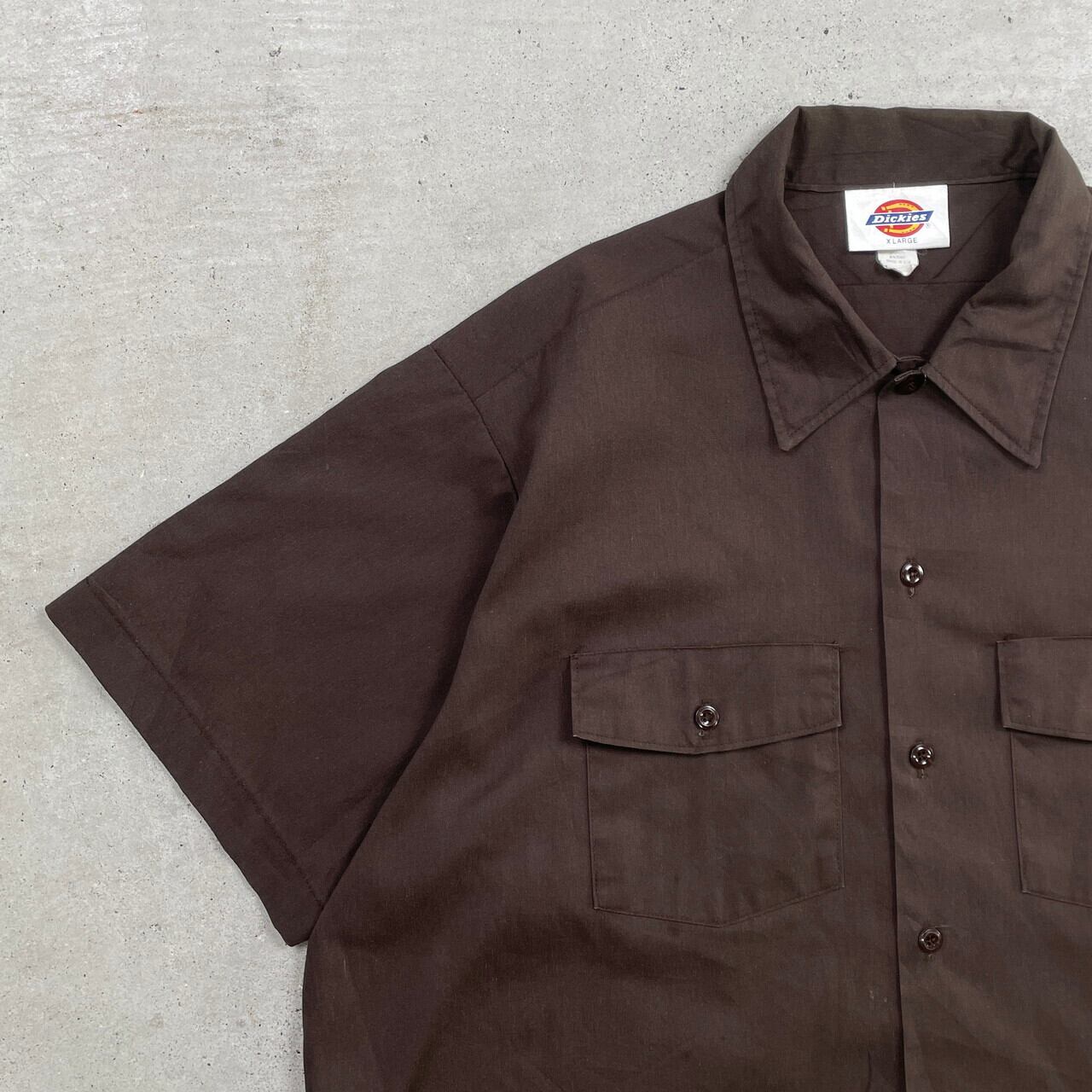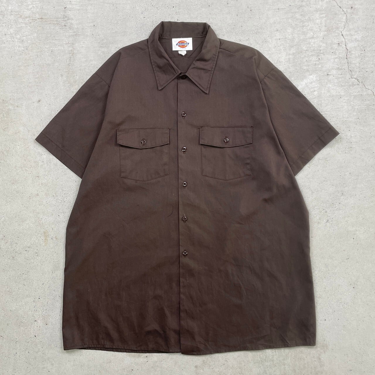 90年代 USA製 Dickies ディッキーズ 半袖 ワークシャツ メンズXL 古着 90s ヴィンテージ VINTAGE アメカジ ダークブラウン こげ茶色 茶色【半袖シャツ】/ブラウン【SA2501-50】