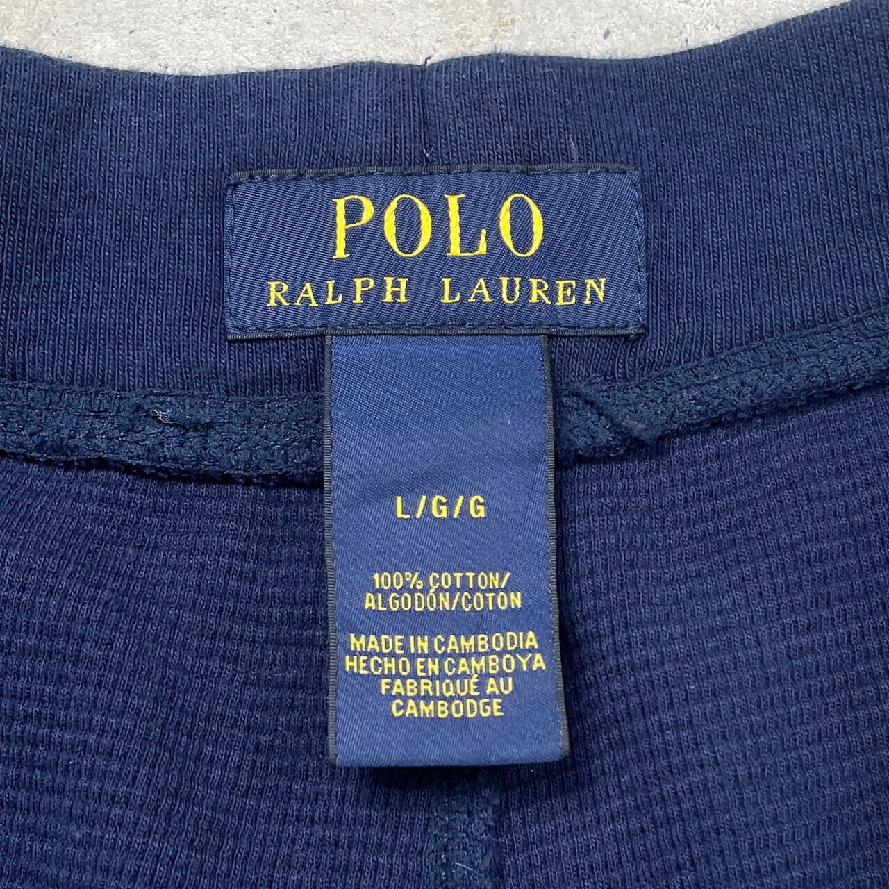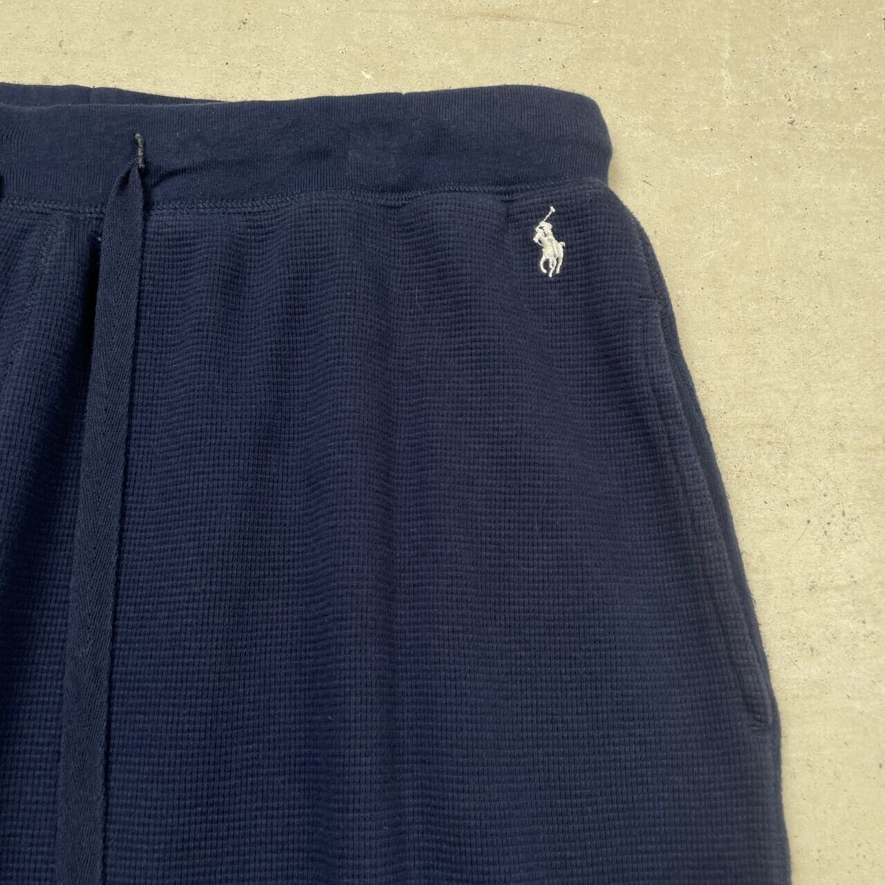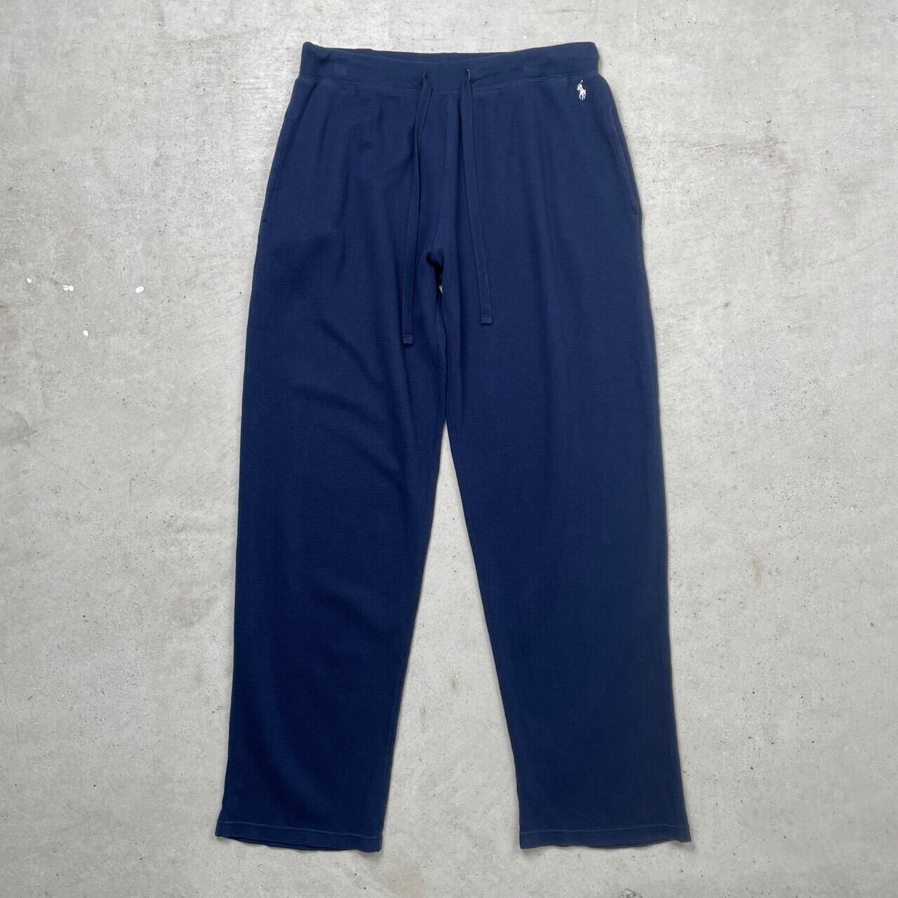 POLO RALPH LAUREN ポロラルフローレン イージーパンツ サーマル ワッフル メンズL 刺繍 ルームパンツ ワンポイントロゴ 古着 紺色【ロングパンツ】/ネイビー