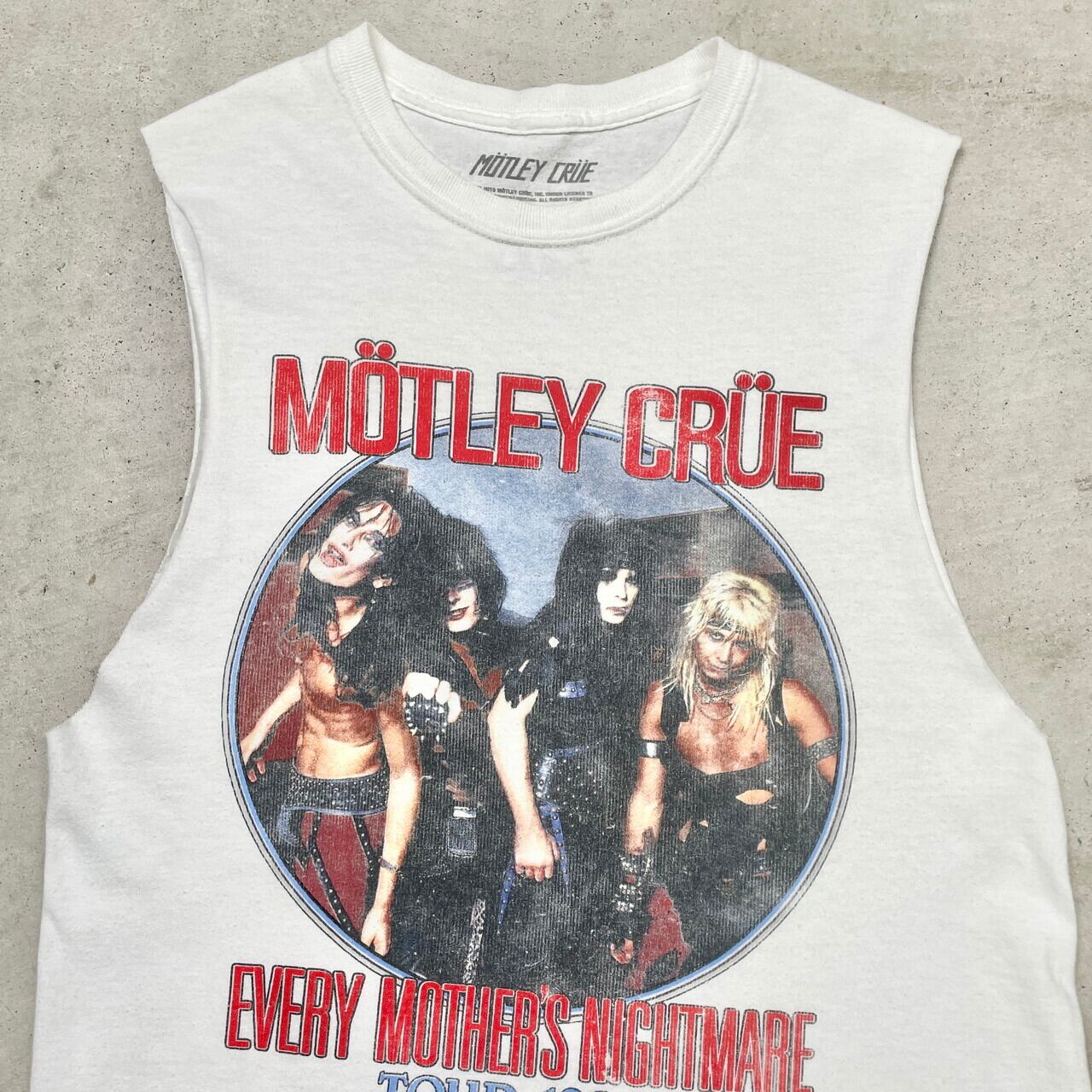 ■Motley Crue モトリー・クルー バンドTシャツ バンT カットオフ ノースリーブ タンクトップ メンズS 古着 リプリント 白色【Tシャツ】/ホワイト