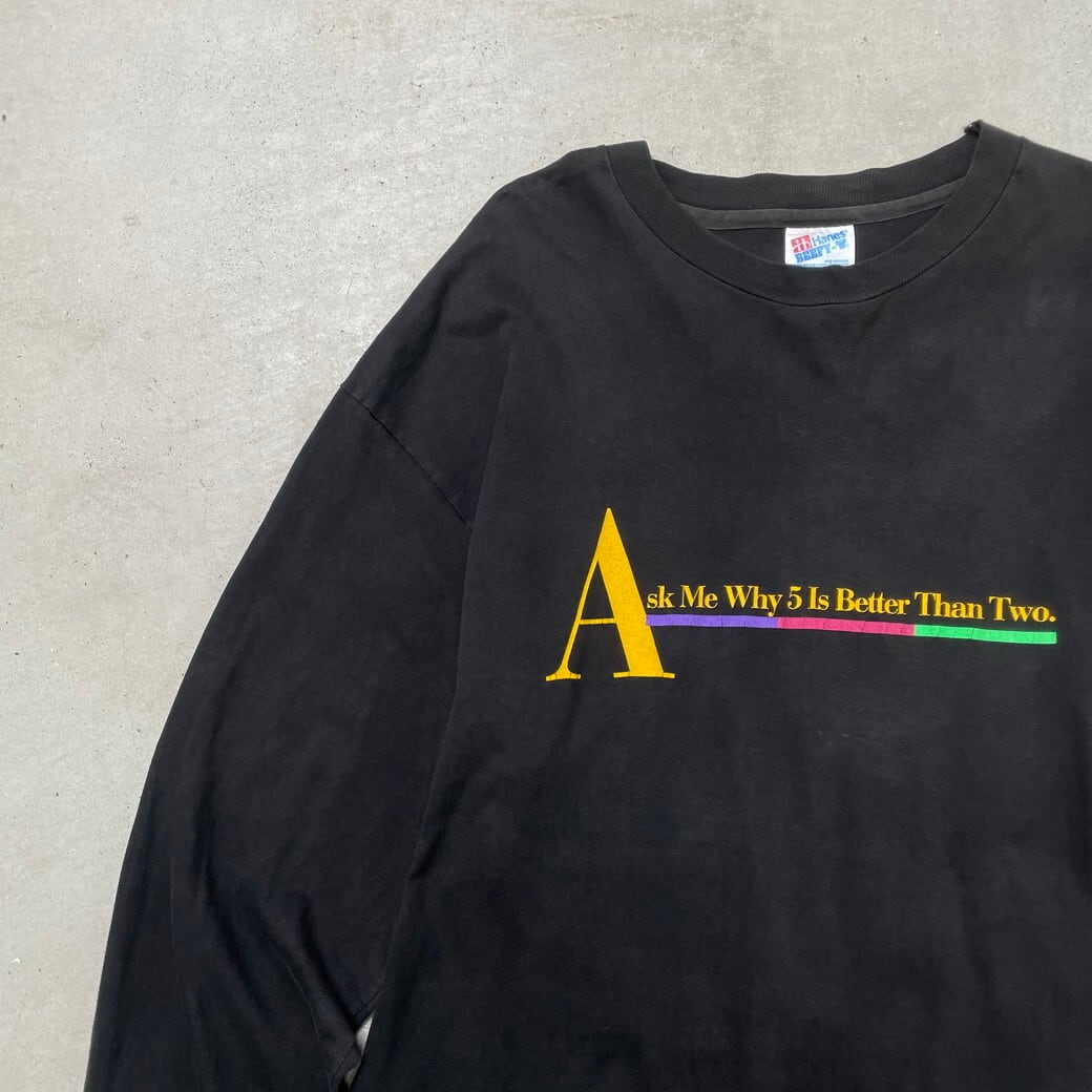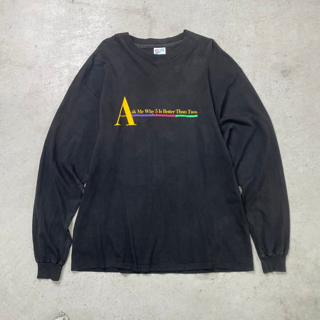 90年代 USA製 HBO CINEMAX ロングTシャツ ロンT 企業ロゴプリント ケーブルテレビ局 メンズXL 古着 90s シングルステッチ ヴィンテージ VINTAGE メッセージ フェードブラック 墨黒【ロングTシャツ】/ブラック【BS25-50】