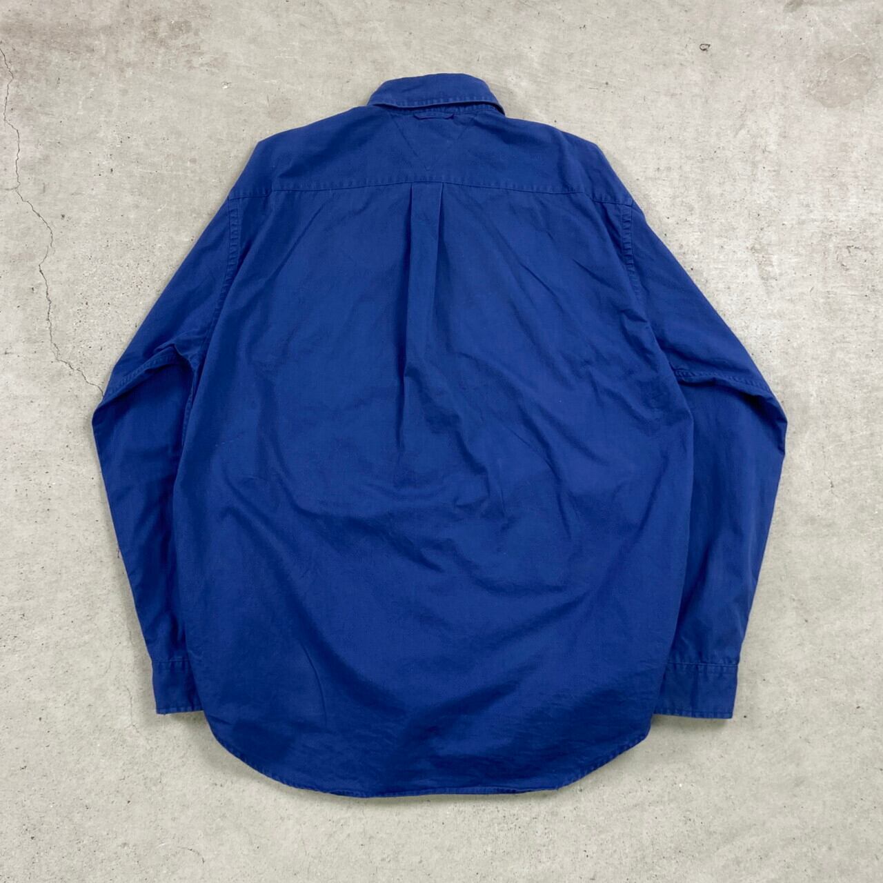 ■90年代 TOMMY HILFIGER トミーヒルフィガー 長袖 ボタンダウンシャツ メンズL 古着 90s VINTAGE ヴィンテージ ワンポイントロゴ刺繍 ブルー 青【長袖シャツ】/ネイビー