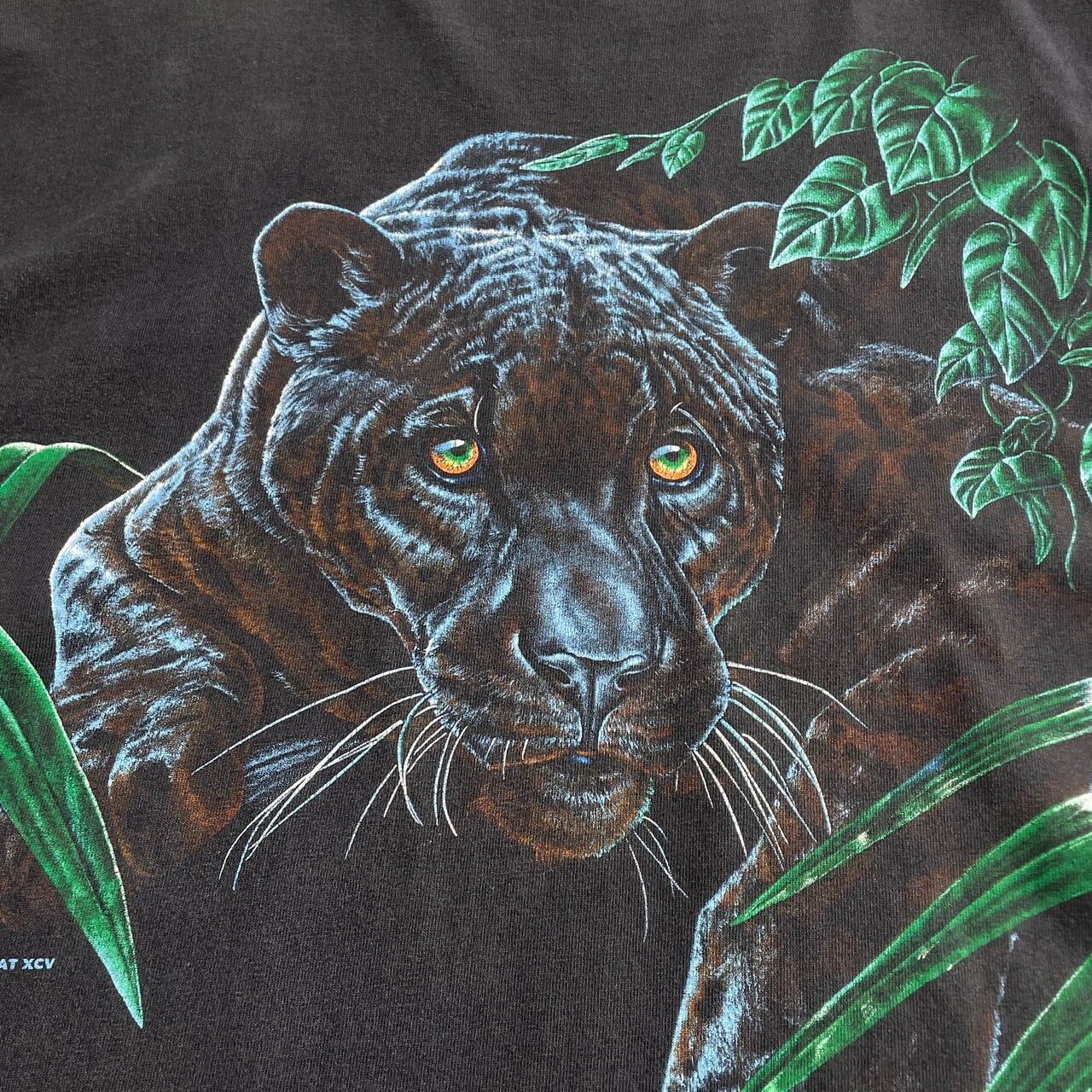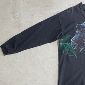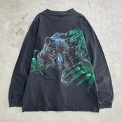 ■90年代 USA製 豹 ヒョウ 両面プリント ロングTシャツ ハイネック メンズXL 古着 90s ヴィンテージ VINTAGE ロンT アニマルプリント 動物 フェードブラック 墨黒【ロングTシャツ】/ブラック