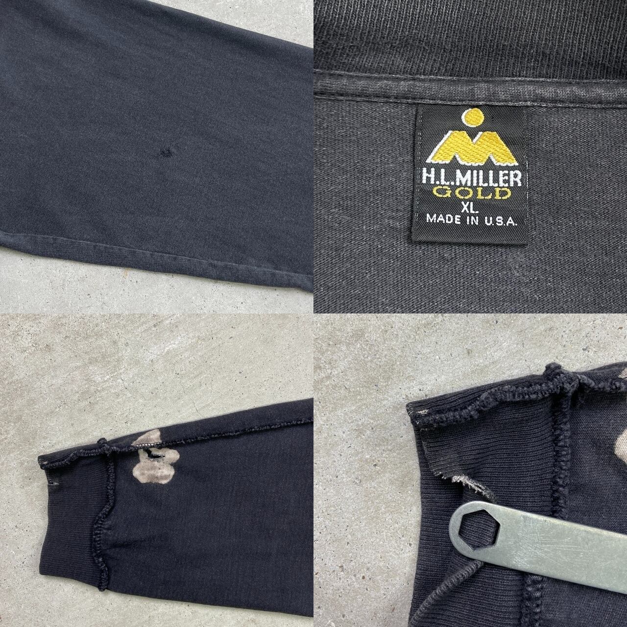 90年代 USA製 豹 ヒョウ 両面プリント ロングTシャツ ハイネック メンズXL 古着 90s ヴィンテージ VINTAGE ロンT アニマルプリント 動物 フェードブラック 墨黒【ロングTシャツ】/ブラック【WS2501-30】