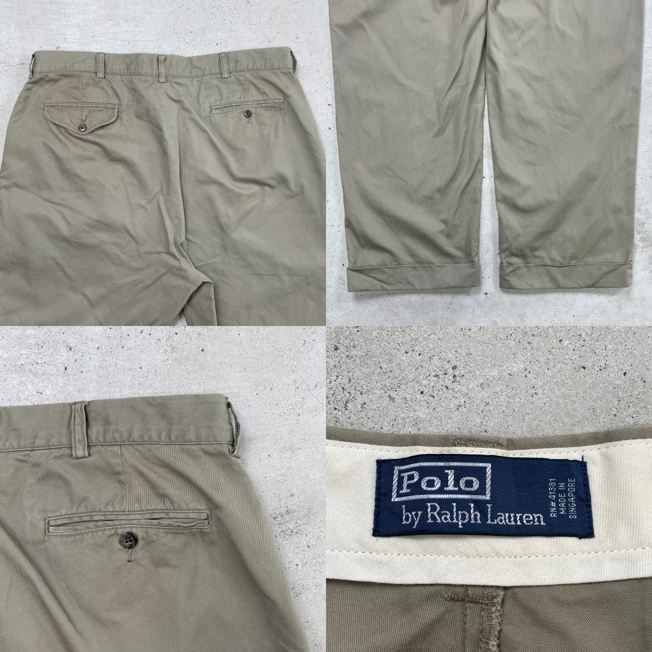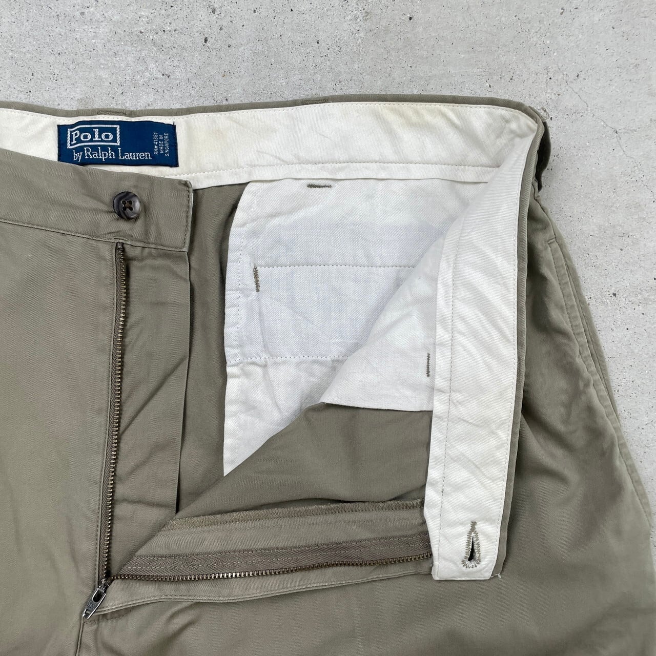■90年代 Polo by Ralph Lauren ポロバイラルフローレン チノパンツ 2タック メンズW38 古着 90s アメカジ VINTAGE ヴィンテージ ポロチノライトオンス 薄手 カーキ【チノパンツ,コットンパンツ】/グレー