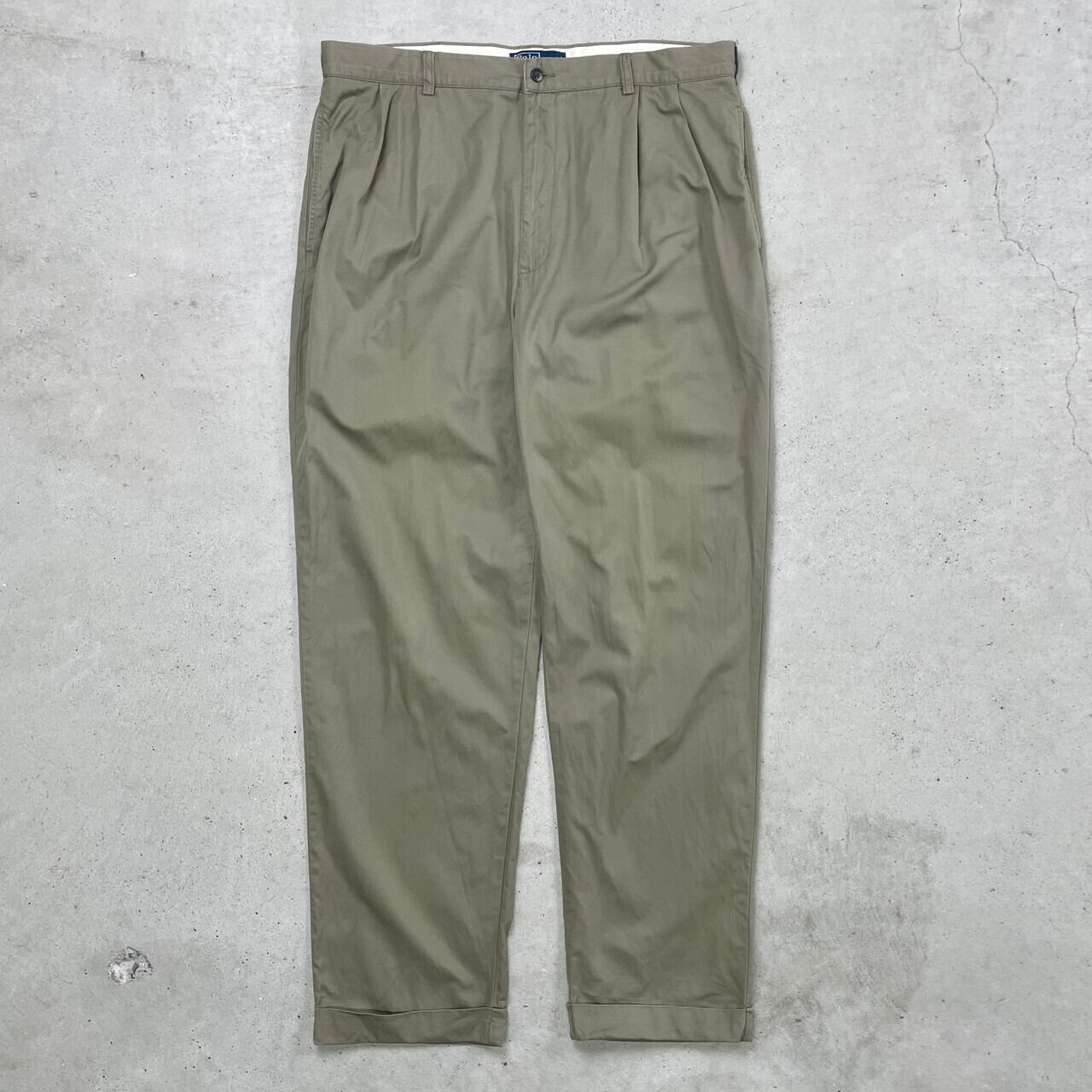 90年代 Polo by Ralph Lauren ポロバイラルフローレン チノパンツ 2タック メンズW38 古着 90s アメカジ VINTAGE ヴィンテージ ポロチノライトオンス 薄手 カーキ【チノパンツ,コットンパンツ】/グレー