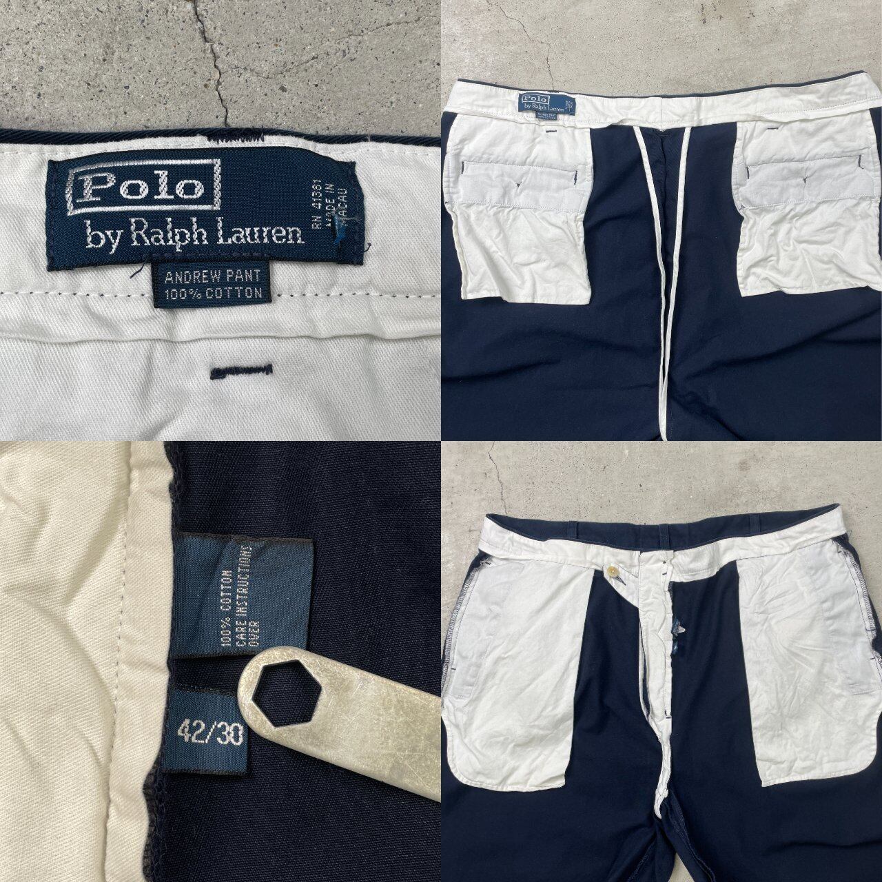 90年代 Polo by Ralph Lauren ポロバイラルフローレン チノパンツ ANDREW PANT ビッグサイズ メンズW42 古着 90s アメカジ VINTAGE ヴィンテージ ポロチノ 紺色【チノパンツ,コットンパンツ】/ネイビー