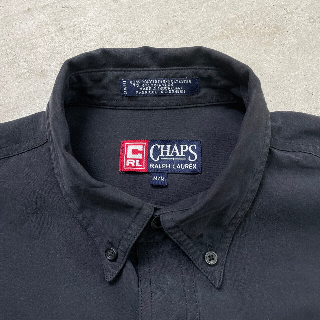 ■90年代 CHAPS Ralph Lauren ポリエステル×ナイロン ボタンダウンシャツ メンズM 古着 チャップス ラルフローレン 90s ボタンダウンシャツ B.Dシャツ 黒【長袖シャツ】/ブラック