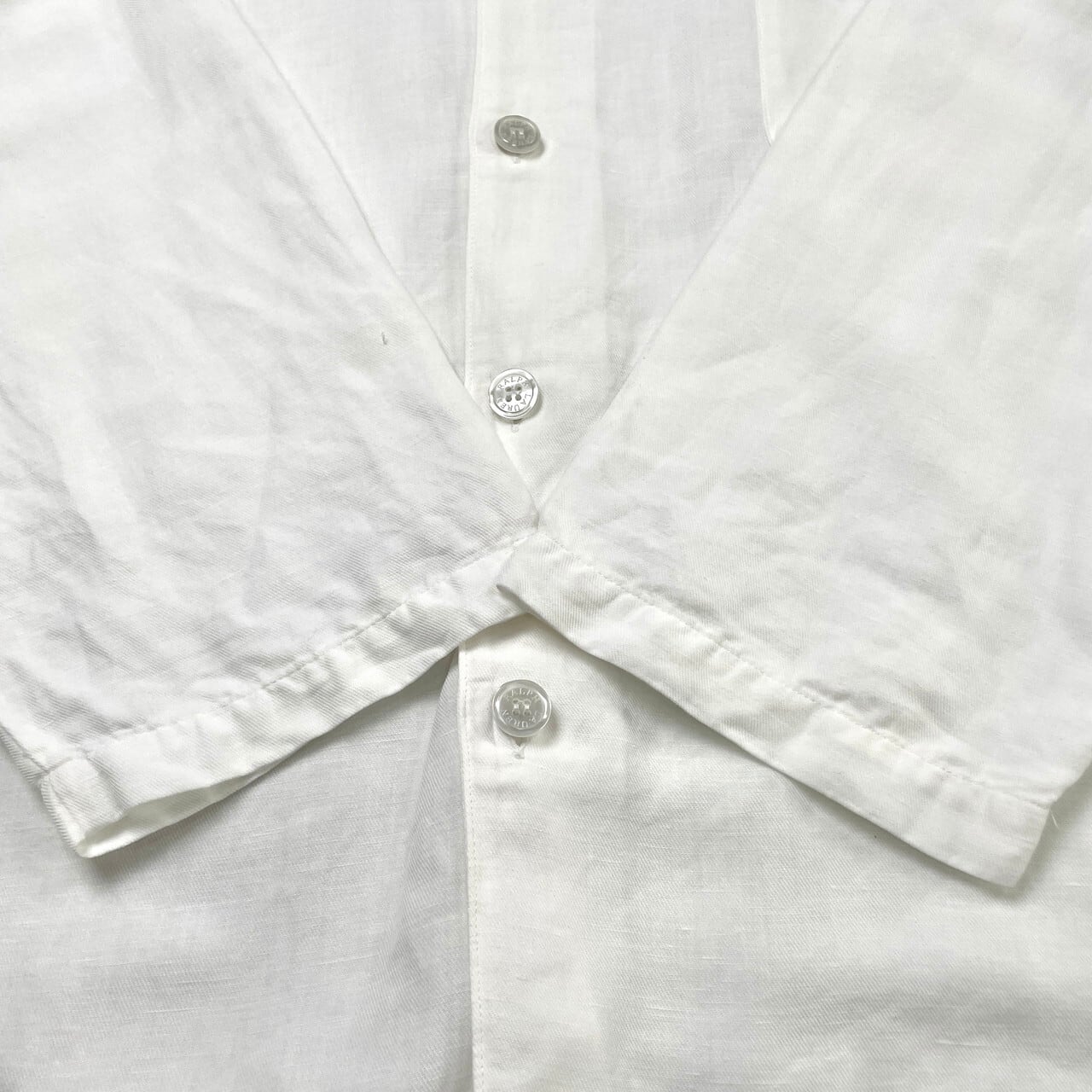 【状態】脇に薄いシミ、フロントボタン裏側に小さな汚れが御座います。