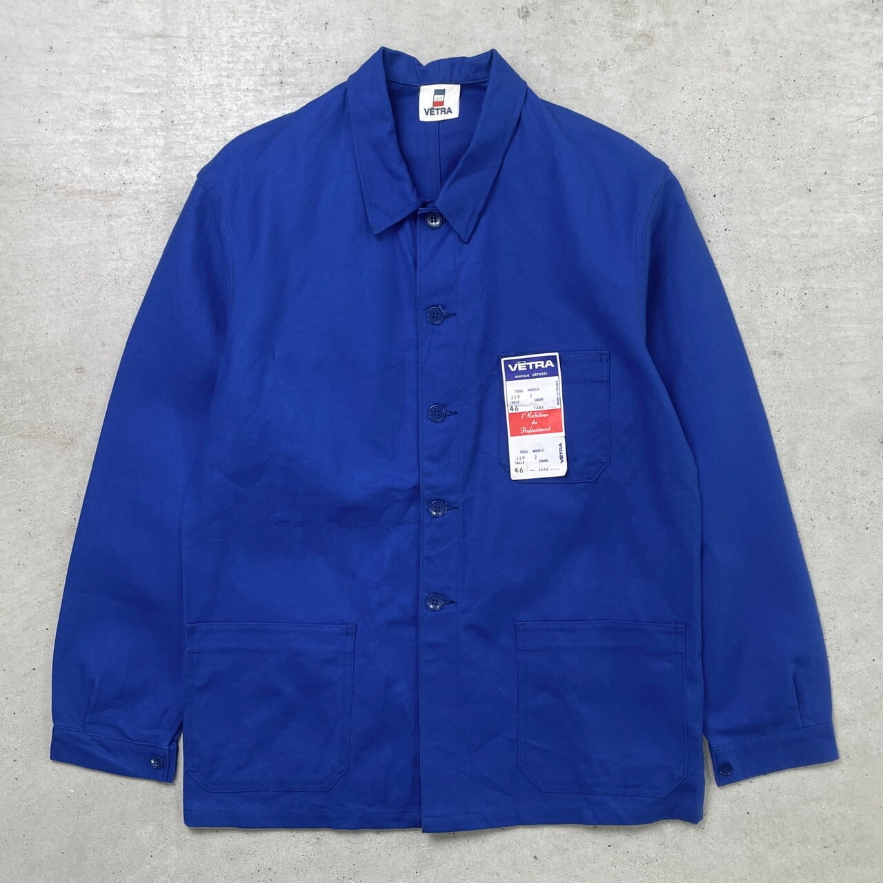 DEAD STOCK NOS 70年代〜80年代 フランス製 VETRA コットンツイル ユーロワークジャケット メンズXL相当 古着 70s 80s ヴィンテージ VINTAGE デッドストック フレンチワークジャケット カバーオール インクブルー【ワークジャケット】/ブルー