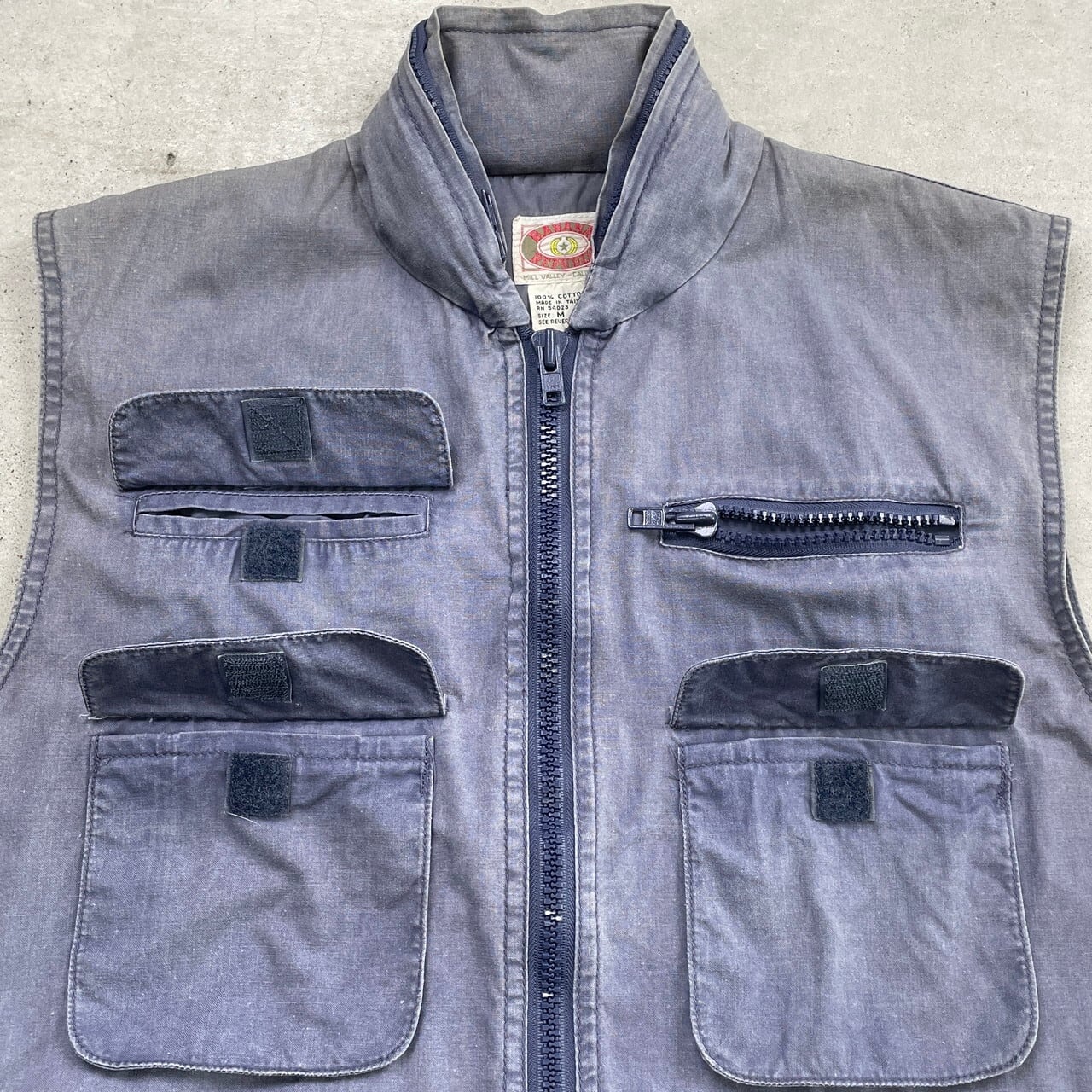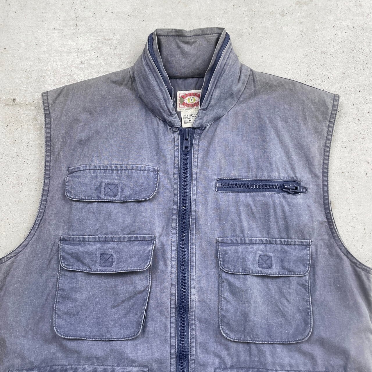 80年代 BANANA REPUBLIC バナナリパブリック サファリベスト メンズL相当 古着 80s ヴィンテージ VINTAGE バナリパ フード収納式 フェード ナス紺【アウトドアジャケット】/ネイビー【SS50-AW】