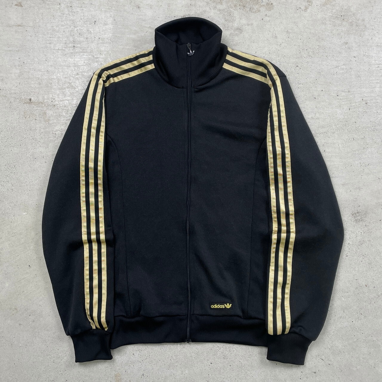 ■adidas アディダス トレフォイルロゴ トラックジャケット ジャージ サイドライン メンズS レディース 古着 Y2K ハイネック 黒金 【ジャージ・トラックジャケット】/ブラック