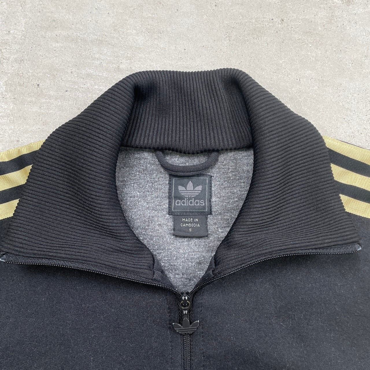 adidas アディダス トレフォイルロゴ トラックジャケット ジャージ サイドライン メンズS レディース 古着 Y2K ハイネック 黒金 【ジャージ・トラックジャケット】/ブラック【SA2501-20】【SS50-AW】