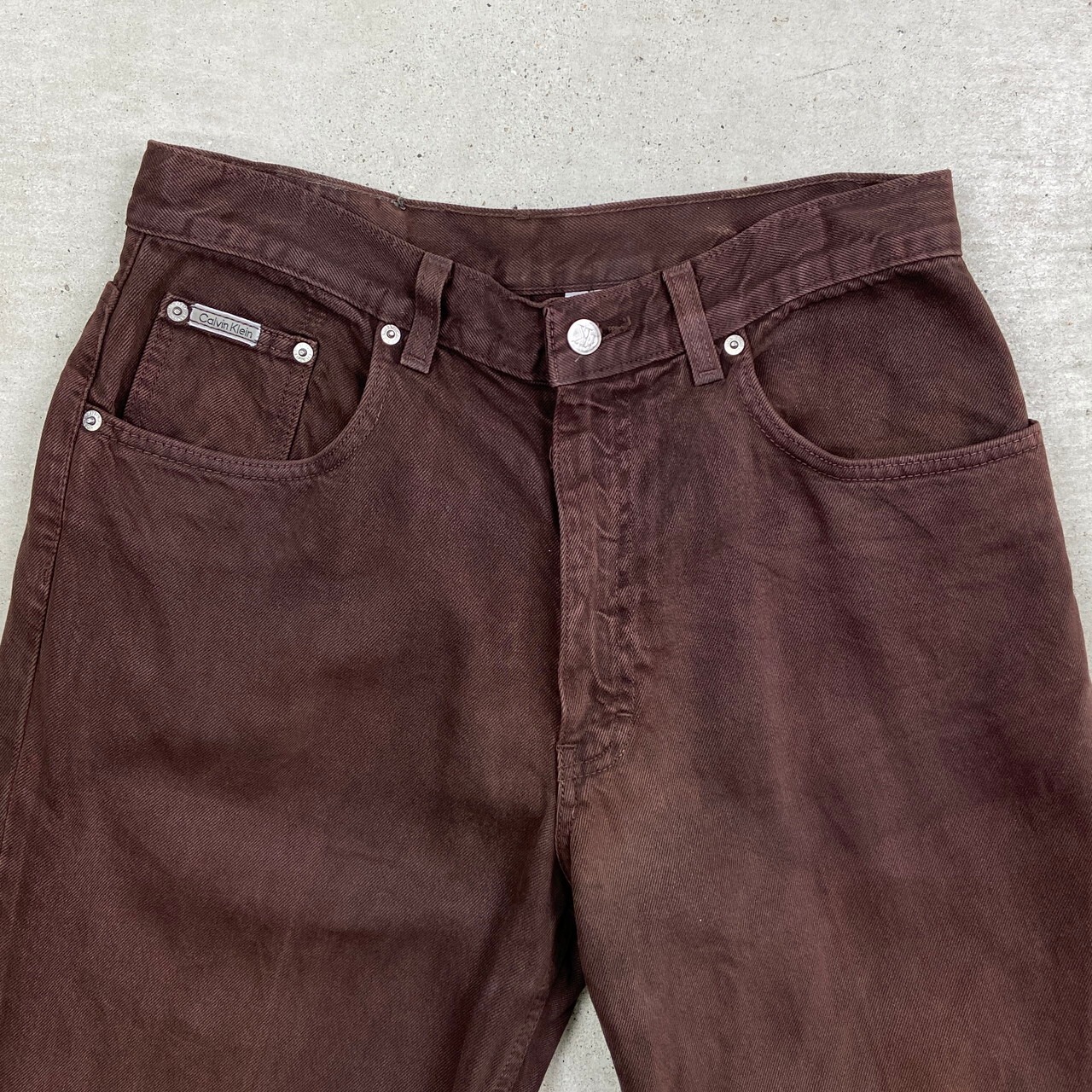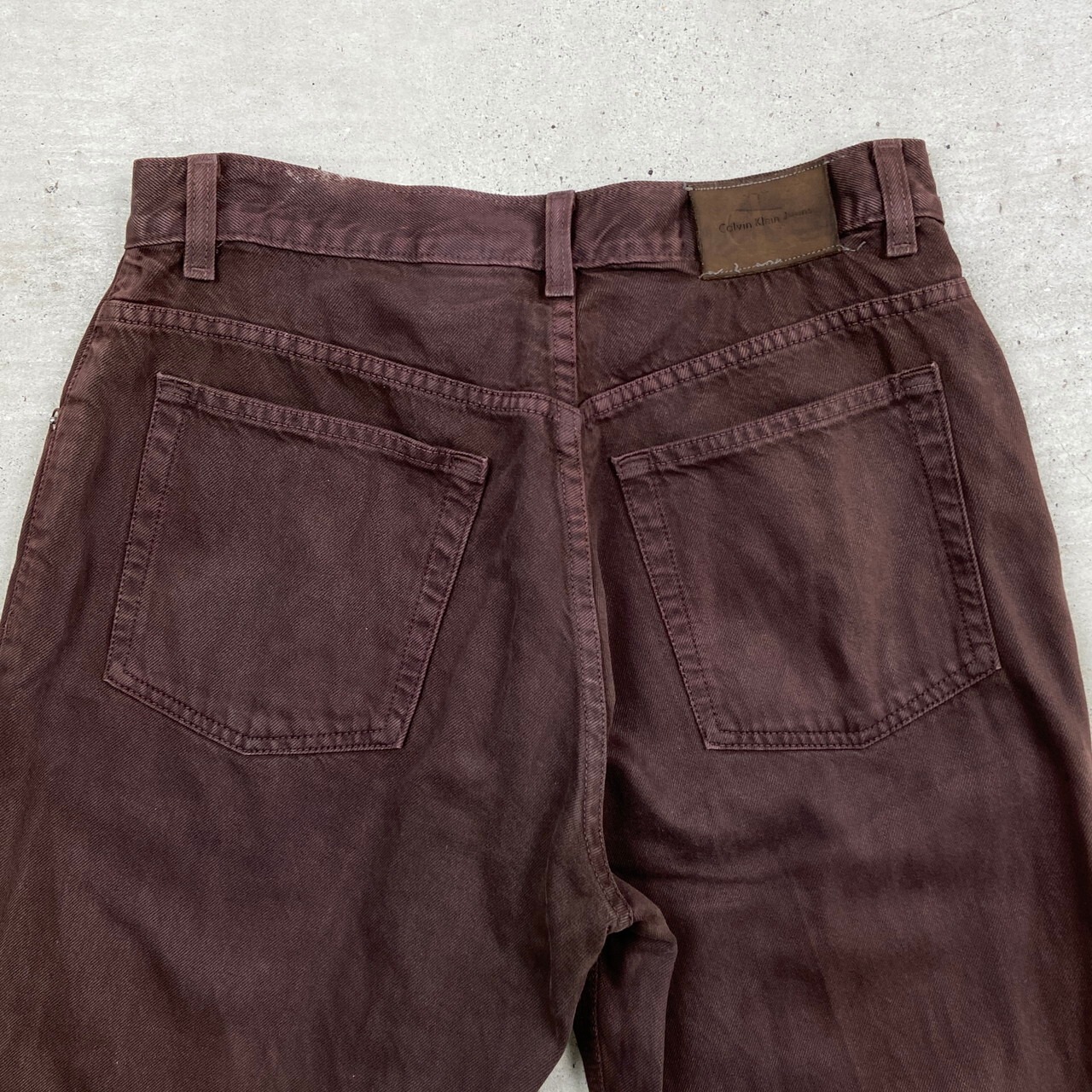 90年代 USA製 Calvin Klein Jeans カルバンクラインジーンズ テーパード ハイウエスト カラーデニムパンツ メンズW32 古着 90s ヴィンテージ VINTAGE CK 茶色 【デニムパンツ】/ブラウン