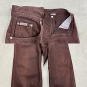 【状態】全体的にフェード、フロント右裾・バックウエスト付近に色抜け、バック革パッチに硬化等の使用感がございます。