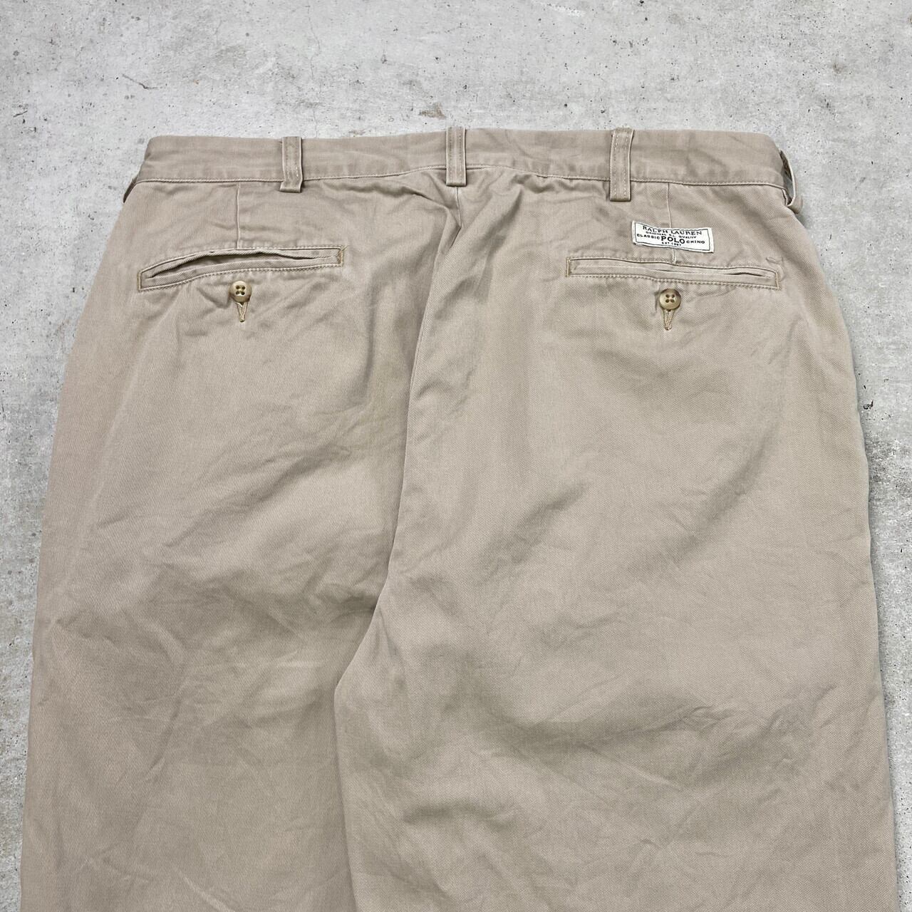 ■90年代 Polo by Ralph Lauren ポロバイラルフローレン ANDREW PANT 2タック ワイドチノパンツ メンズW34 古着 90s VINTAGE ヴィンテージ ポロチノ サンドベージュ【チノパンツ,コットンパンツ】/ベージュ