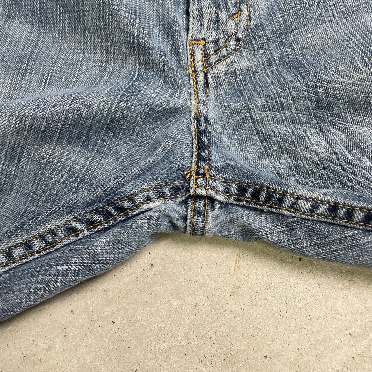 【状態】バックポケット横、股付近等にタタキによるリペア、数ヶ所擦れや擦り切れ等の使用感がございます。