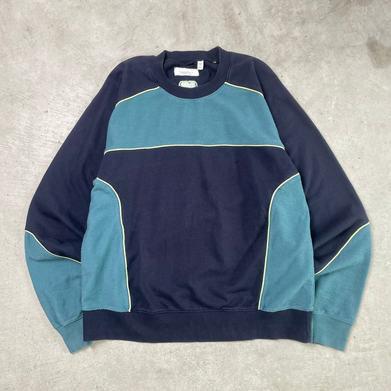 ■STANDARD/CLOTH 切り替え スウェットシャツ メンズXL相当 古着 ストリート ネイビー×ターコイズブルー 紺色 緑色【スウェット】/ネイビー