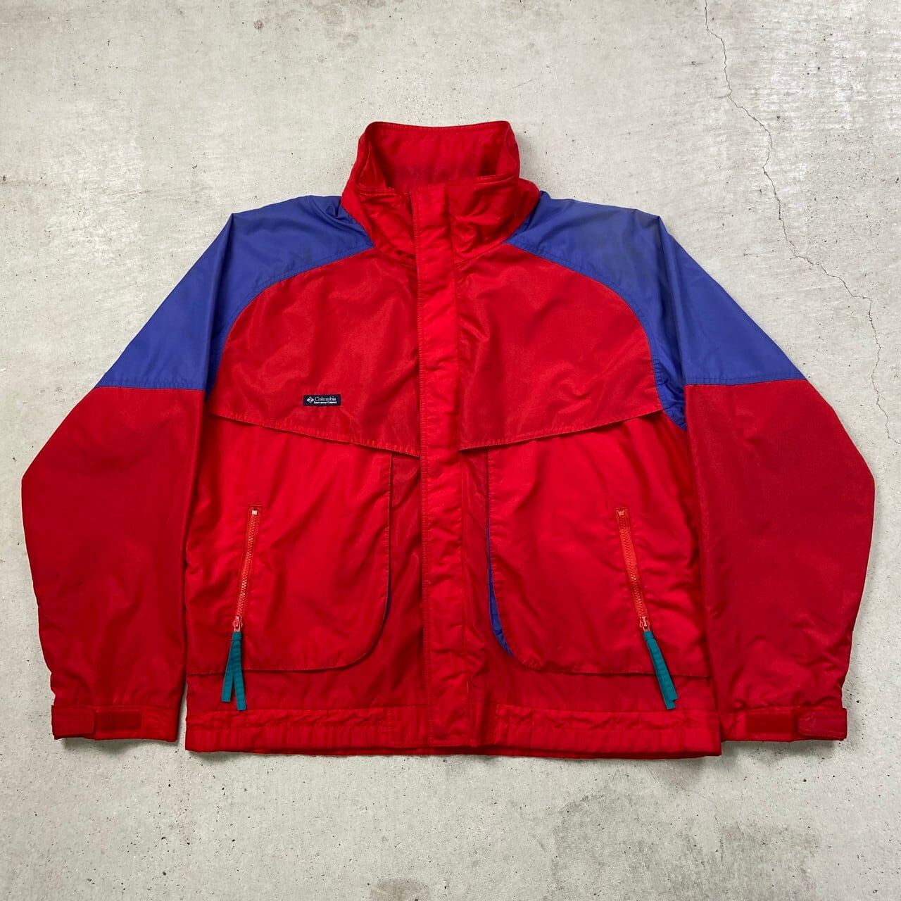 ■80年代 Columbia Powder Keg コロンビア マウンテンジャケット メンズXL 古着 紺タグ 80s ヴィンテージ VINTAGE アウトドアジャケット ハイネック レッド ライトパープル 赤色 紫色 【アウトドアジャケット】/マルチカラー