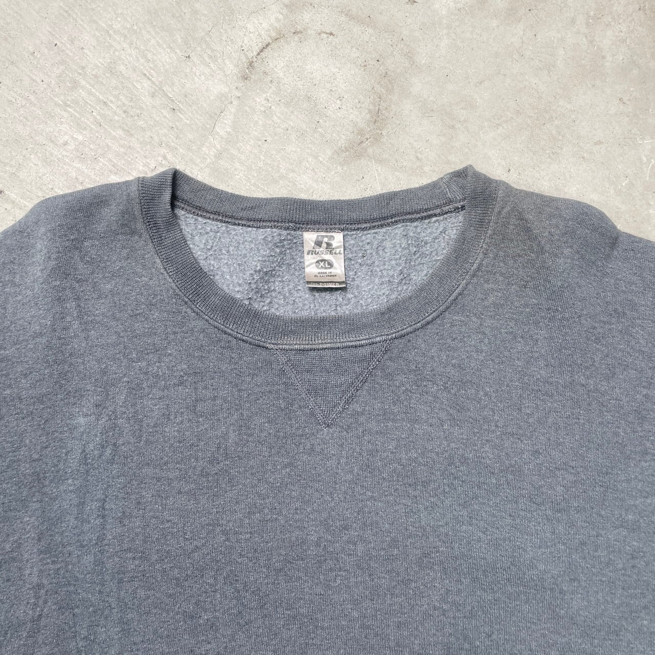 ■90年代 RUSSELL ラッセル ブランクスウェットシャツ 無地 メンズ2XL相当 古着 アメカジ 前Vガゼット 90s ヴィンテージ VINTAGE チャコールグレー【スウェット】/グレー