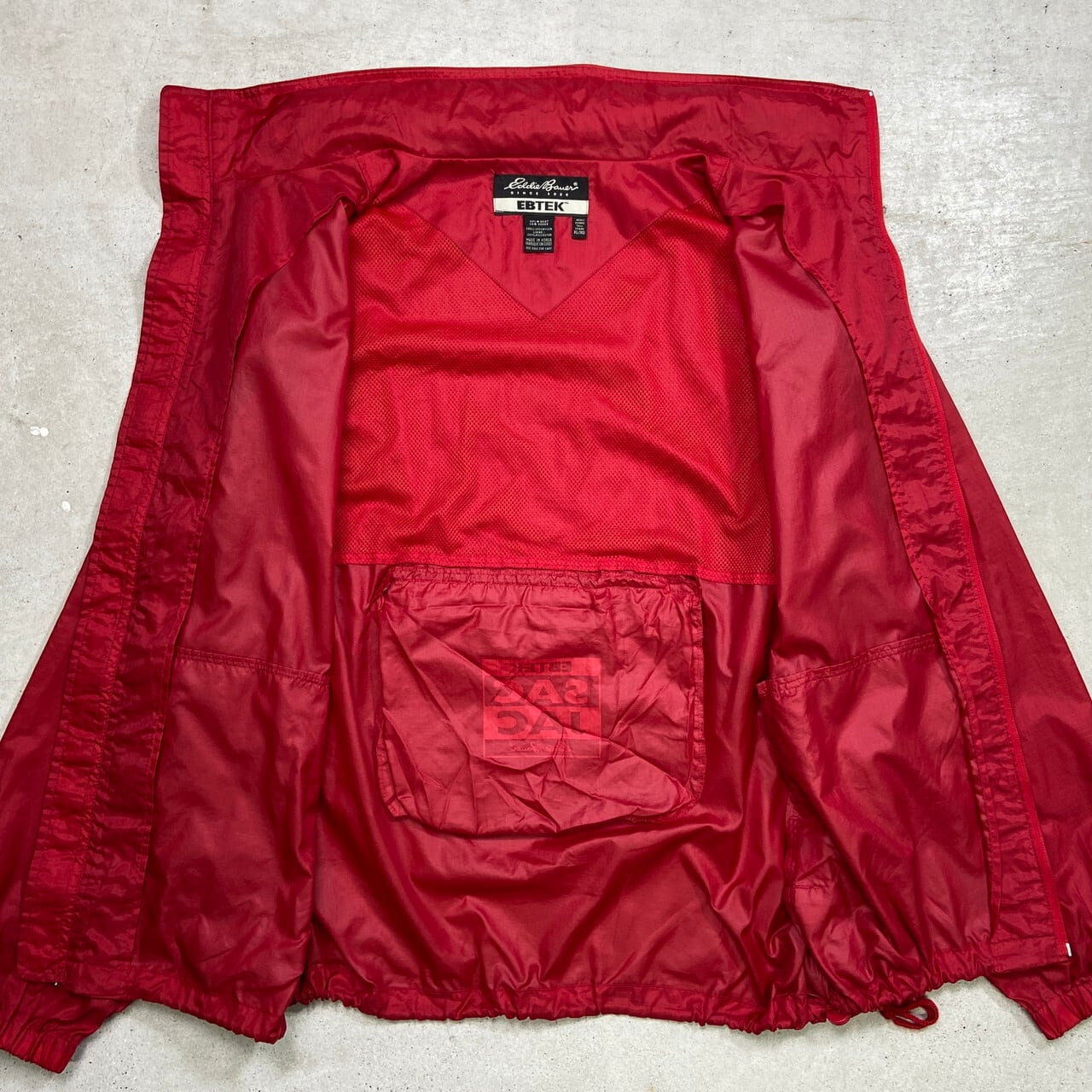 90年代 Eddie Bauer EBTEK SAC JAC エディーバウアー サックジャック リップストップ ナイロンマウンテンジャケット メンズXL 古着 パッカブル 90s ビンテージ ヴィンテージ VINTAGE フード収納型 赤色【アウトドアジャケット】/レッド【SA2501-20】【SS50-AW】