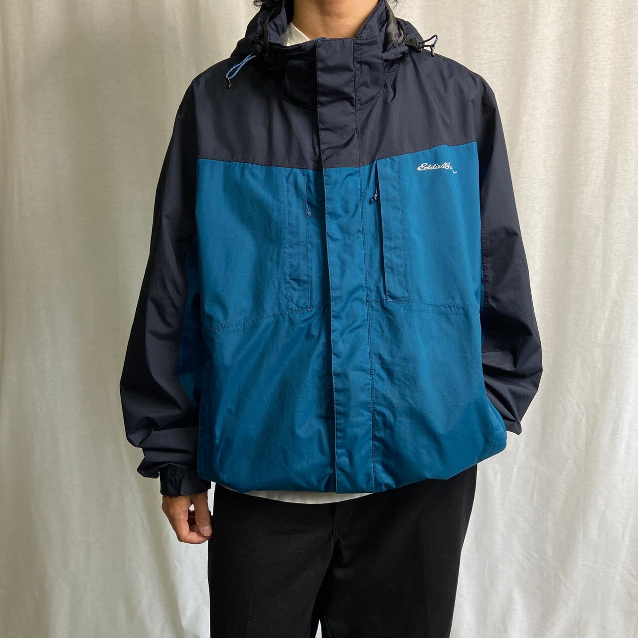 00年代 Eddie Bauer エディーバウアー アウトドアジャケット マウンテンジャケット メンズXL 古着 フード着脱型 00s ヴィンテージ VINTAGE アメカジ ツートンカラー ブルー ネイビー 青色 紺色【アウトドアジャケット】/マルチカラー【SA2501-20】【SS50-AW】
