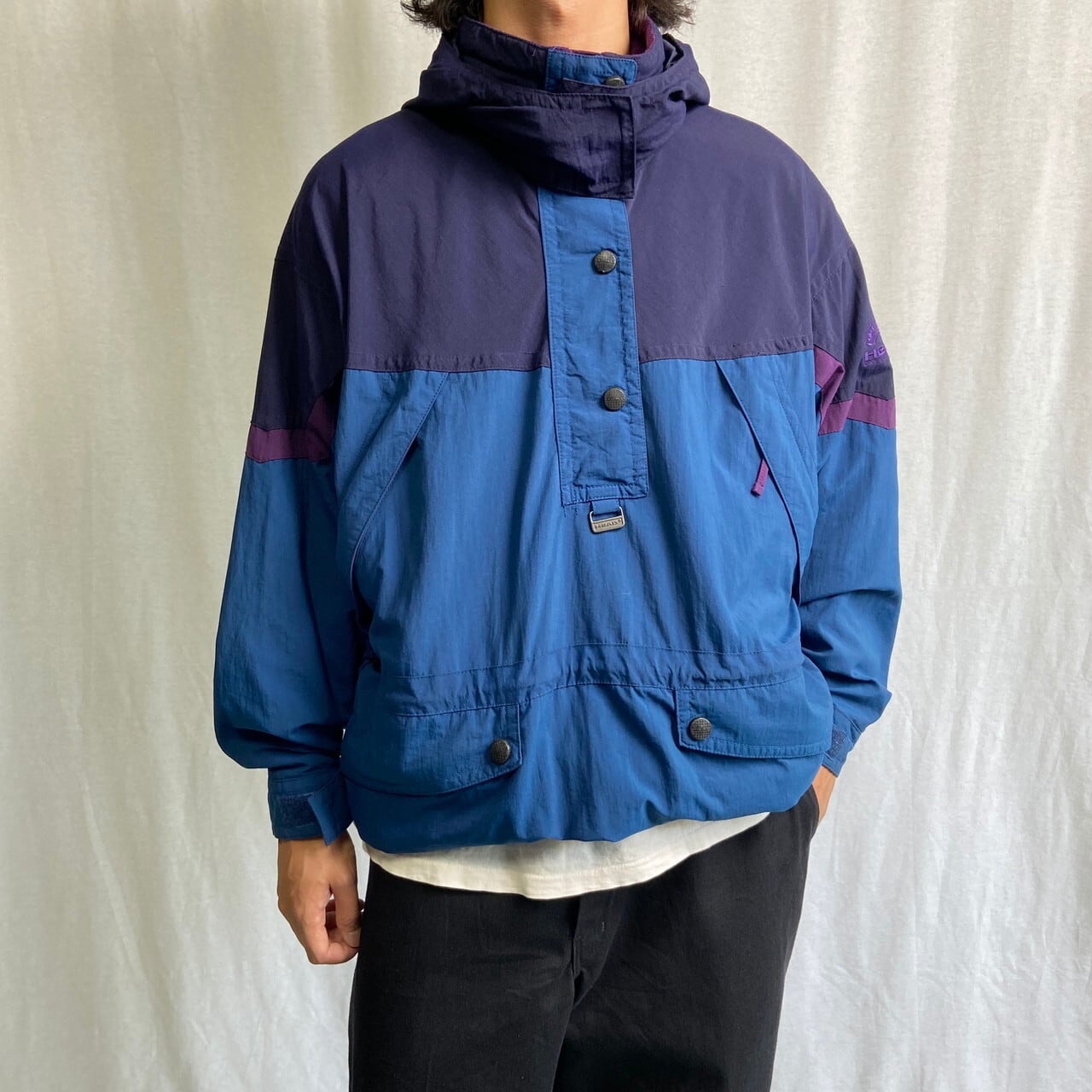 90年代 The HEAD EXPLORATION ナイロンアノラックパーカー メッシュライナー メンズL相当 レディース 古着 90s アウトドア ヴィンテージ VINTAGE 紺色 青色 【アウトドアジャケット】/ネイビー【SA2501-20】【BS25-50】