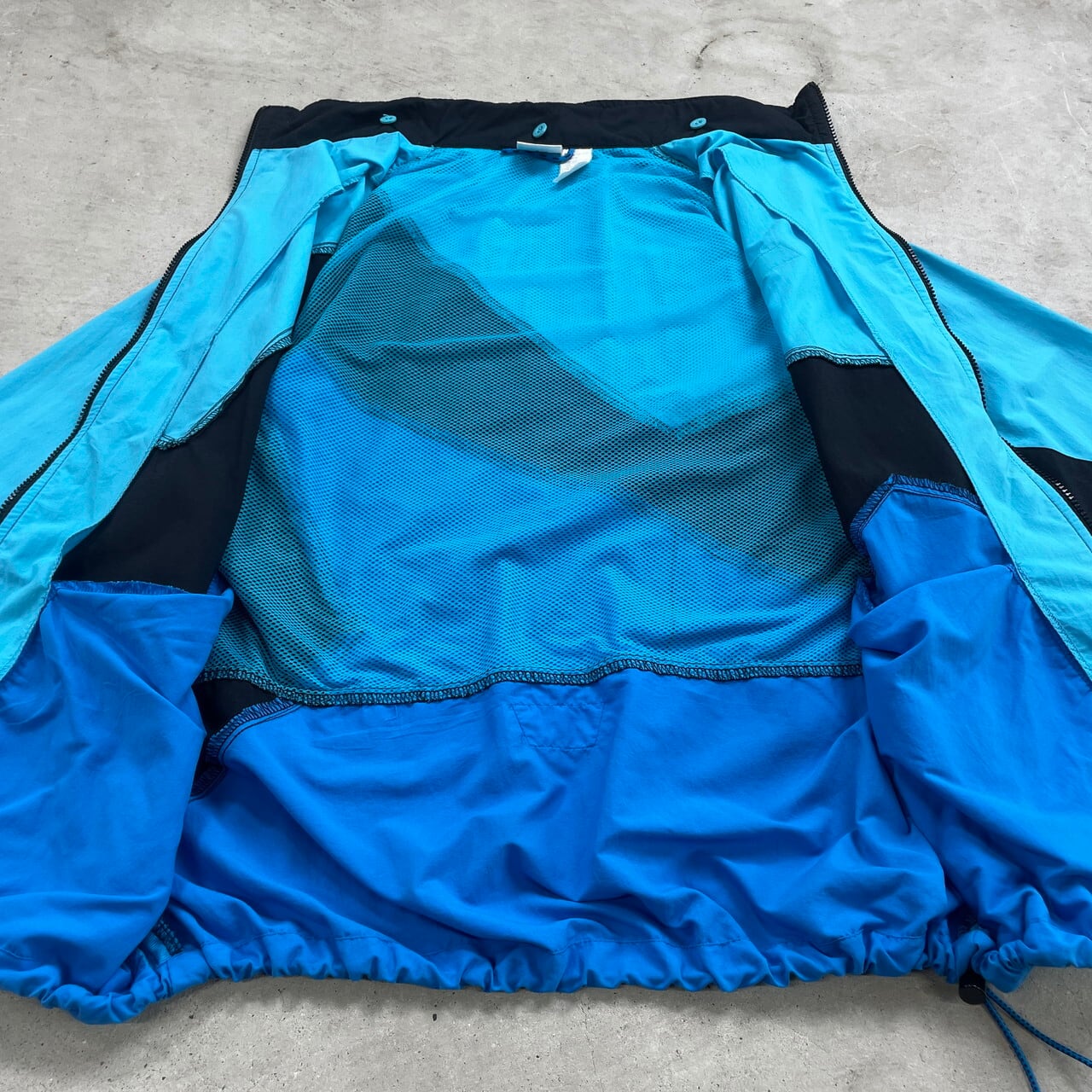 ■90年代 NIKE ナイキ 銀タグ ナイロンジャケット トラックジャケット メンズL相当 古着 フード着脱型 90s ヴィンテージ VINTAGE ターコイズブルー ブルー ブラック 青色 黒色 【ナイロンジャケット】/マルチカラー