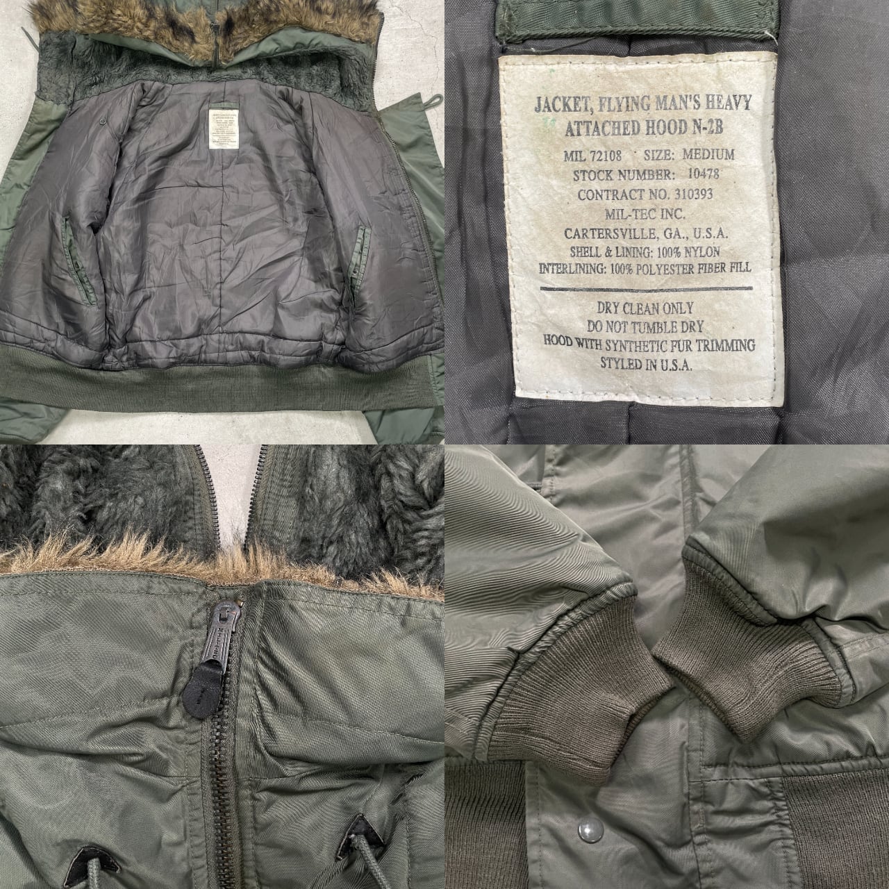 ■90年代 USA製 MIL-TEC N-2B フライトジャケット 民間品 メンズL相当 古着 90s ヴィンテージ VINTAGE キルティングライナー アメカジ セージグリーン オリーブグリーン 光沢【ミリタリージャケット】/グリーン