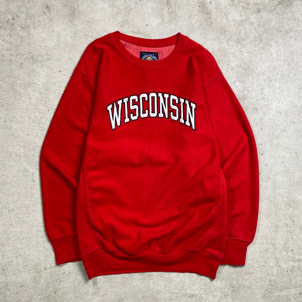 00年代 STEVE & BARRY'S リバースウィーブタイプ カレッジロゴ 刺繍 スウェットシャツ メンズM 古着 アメカジ 00s Y2K VINTAGE ヴィンテージ トレーナー ウィスコンシン大学 ヘビーウェイト 赤 【スウェット】/レッド【B2412SW】【SS50-AW】