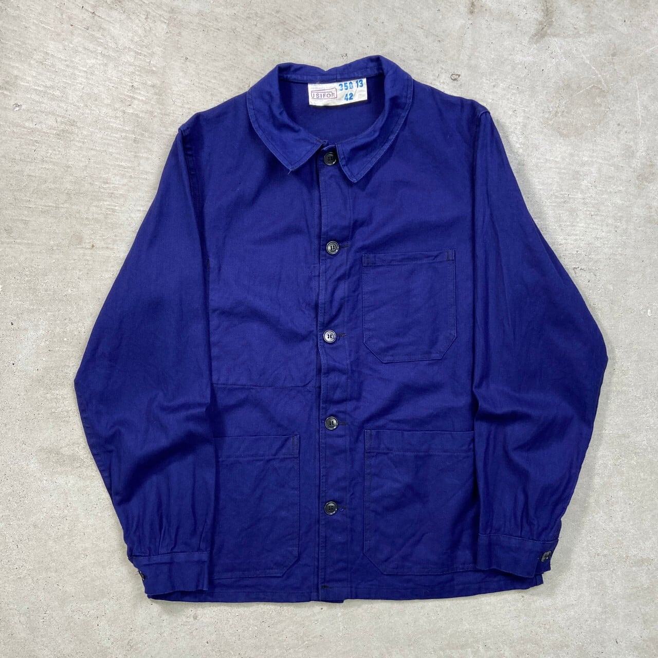 60〜70年代 フランス製 USIFOR フレンチワークジャケット ユーロワーク コットンツイル メンズM相当 古着 60s 70s カバーオール ヴィンテージ VINTAGE インクブルー 紺色【ワークジャケット】/ネイビー【SA2501-20】【WS2501-30】
