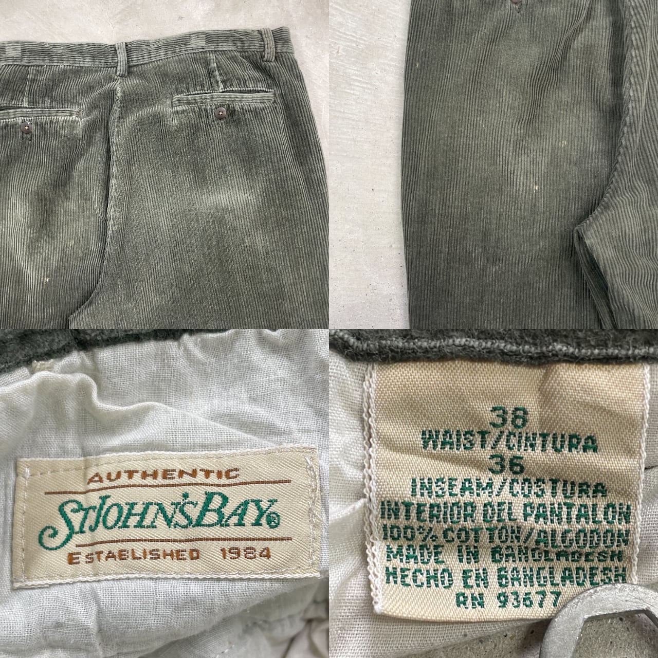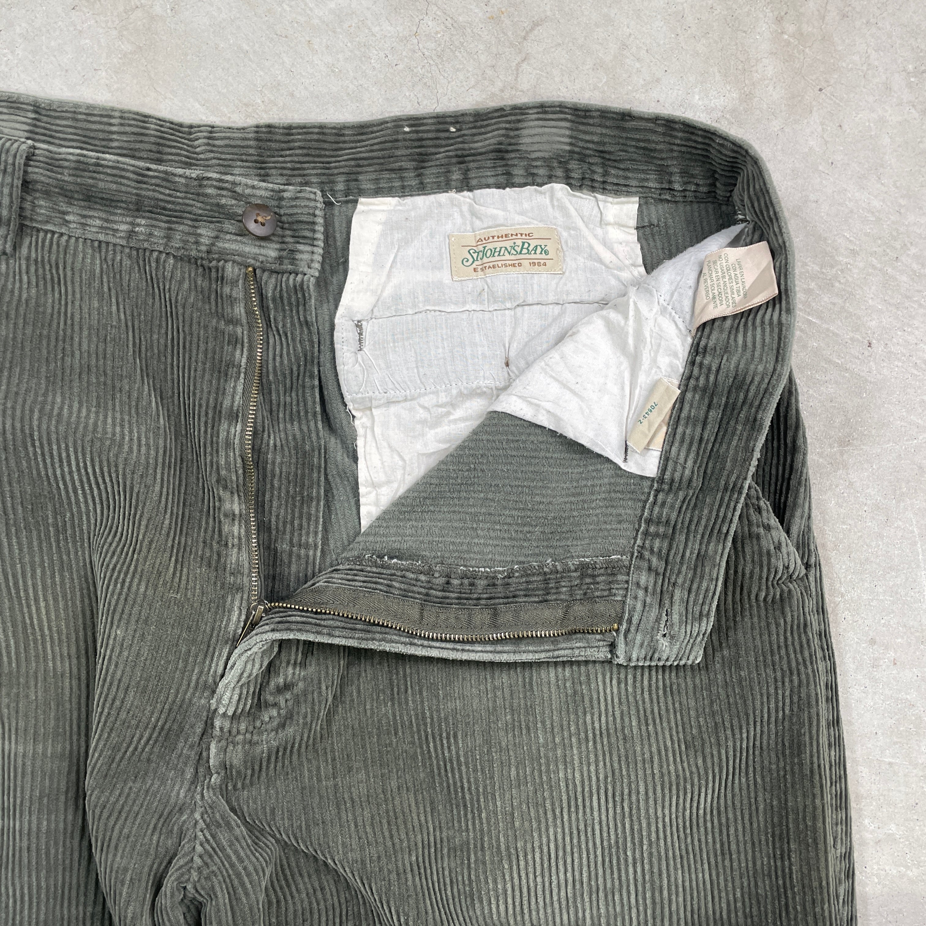 ■STJOHN'S BAY セントジョンズベイ コーデュロイパンツ 太畝 メンズW38 古着 テーパード 太畝 カーキ 緑【コーデュロイパンツ】/グリーン
