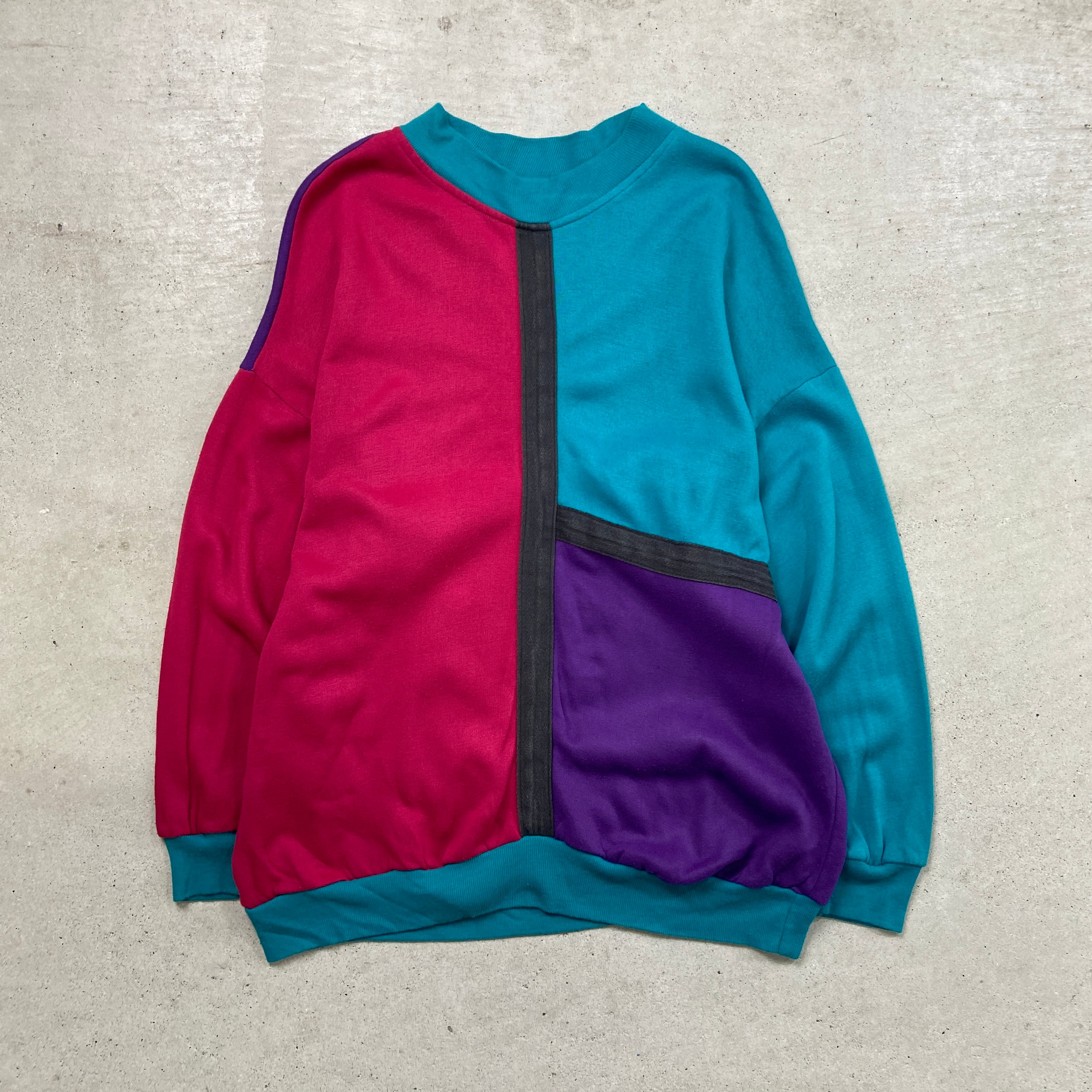 90年代 END ON END USA製 クレイジーパターン スウェットシャツ メンズL相当 古着 90s ヴィンテージ VINTAGE トレーナー エメラルドグリーン ブラック 黒 ピンク パープル 紫【スウェット】/マルチカラー【SS50-AW】