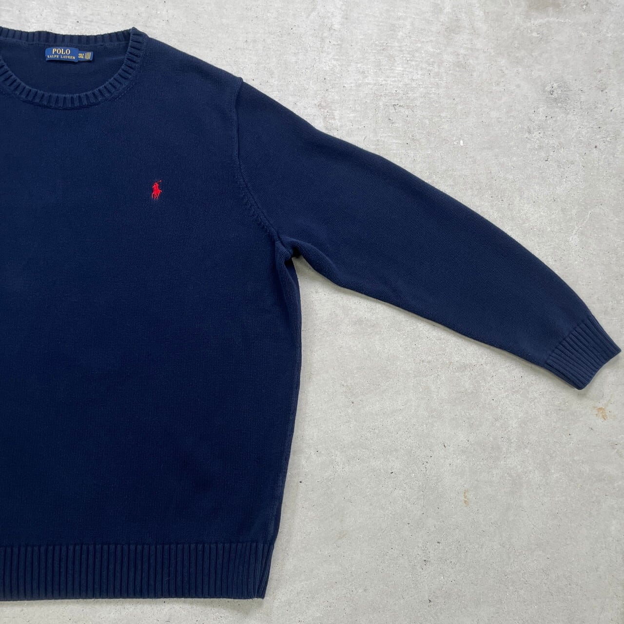 ■Polo Ralph Lauren ポロラルフローレン コットンニットセーター ワンポイントロゴ刺繍 メンズ4XL 古着 ラルフローレン ビッグサイズ 大きいサイズ 紺【ニットセーター】/ネイビー