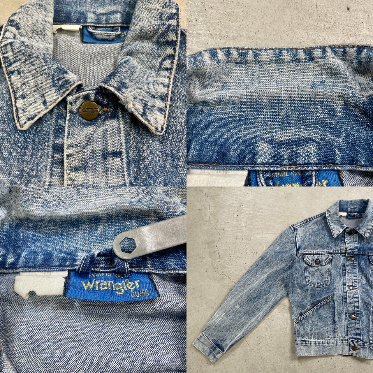 80年代 Wrangler ラングラー ケミカルウォッシュ デニムジャケット メンズM相当 古着 80s ヴィンテージ VINTAGE アメカジ 【デニムジャケット】/ブルー【BS25-30】