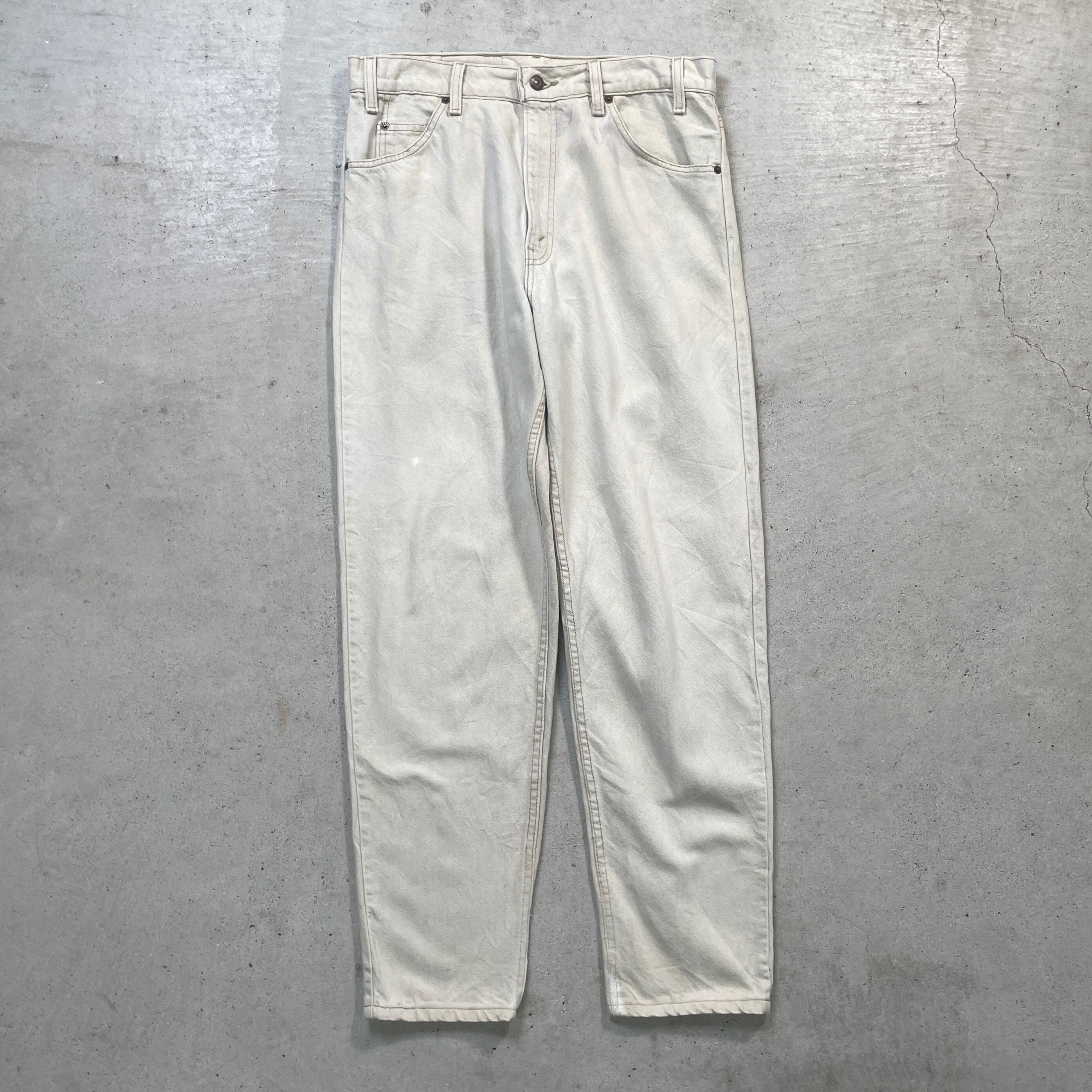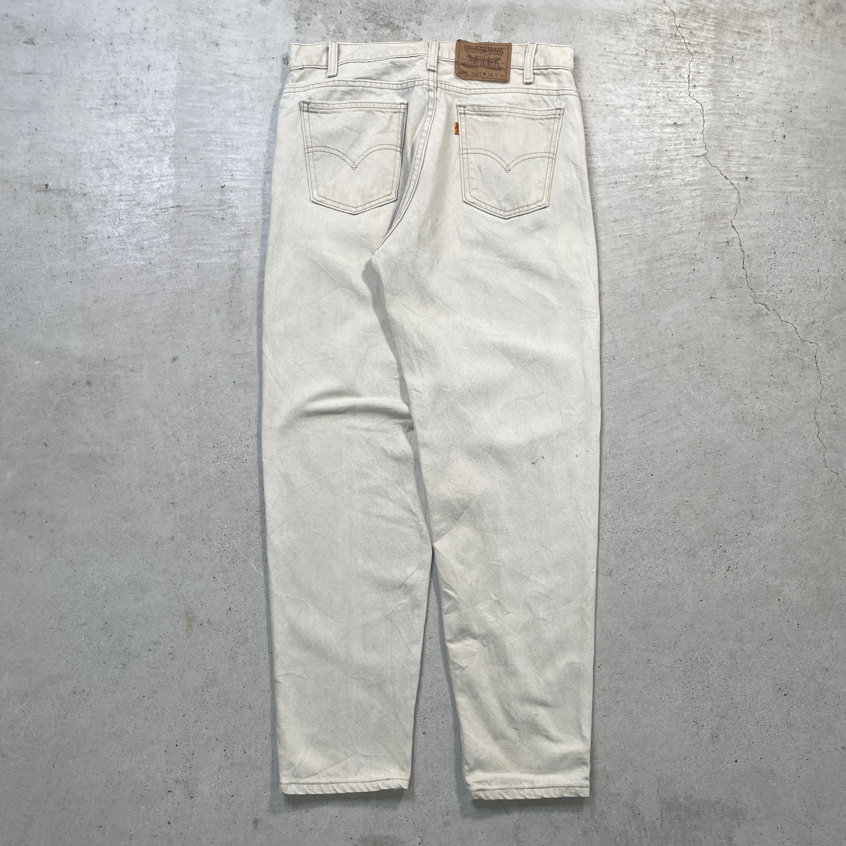 90年代 USA製 Levi's リーバイス 550 テーパード ワイドデニムパンツ RELAXED FIT オレンジタブ メンズW34 古着 90s ヴィンテージ VINTAGE アメカジ バギーデニム ルーズデニム ワイドデニム クリーム 生成り【デニムパンツ】/ホワイト