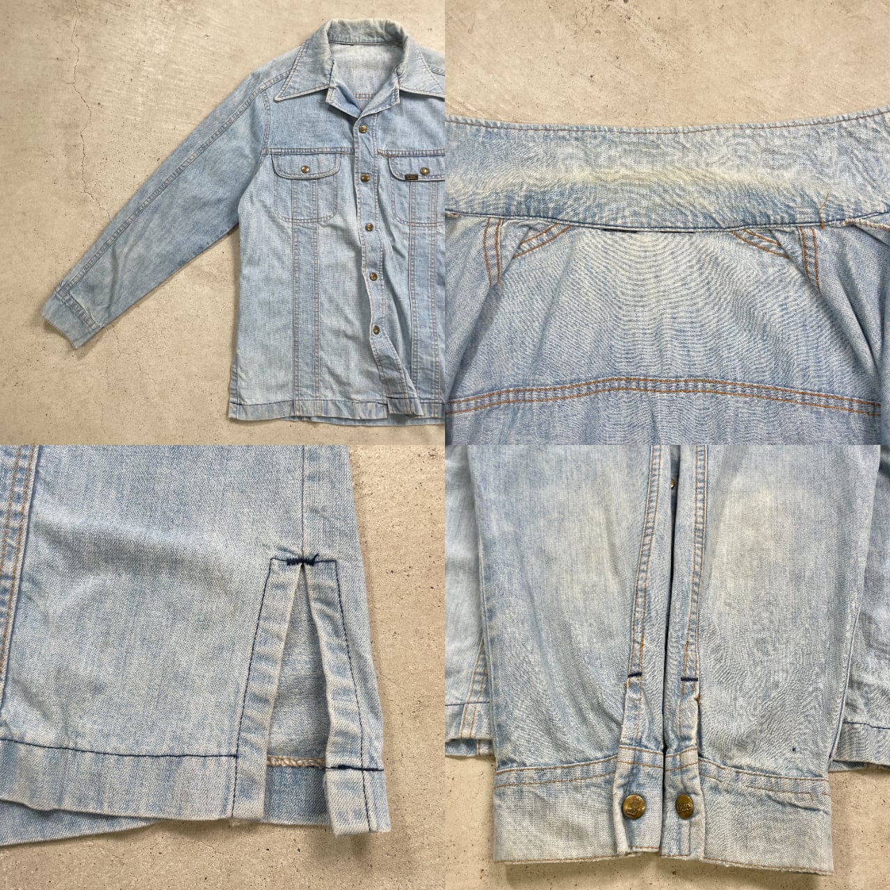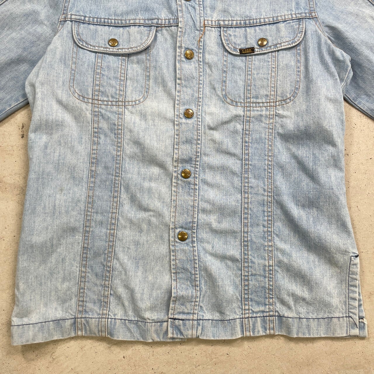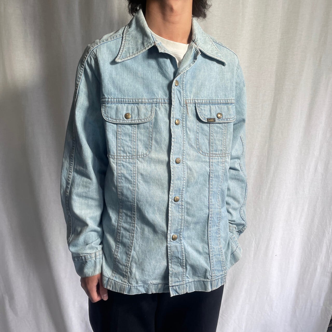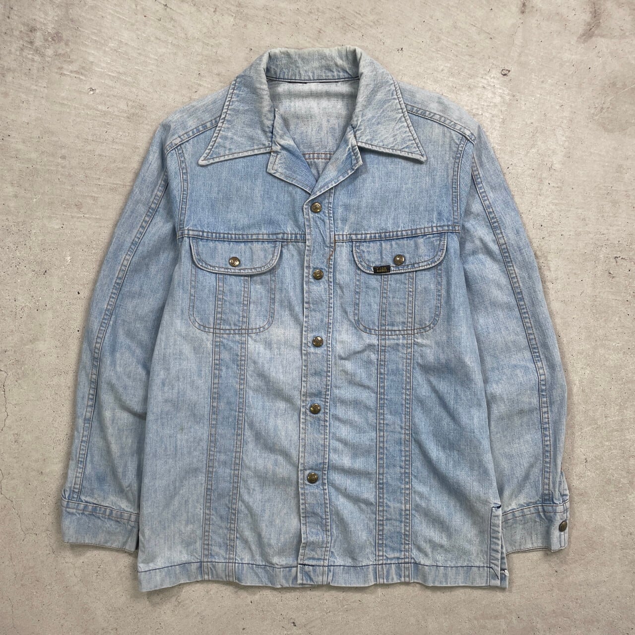 70年代 USA製 Lee リー デニムシャツ ブッシュジャケット オープンカラー メンズL相当 古着 70s ヴィンテージ VINTAGE アメカジ 【長袖シャツ】/ブルー
