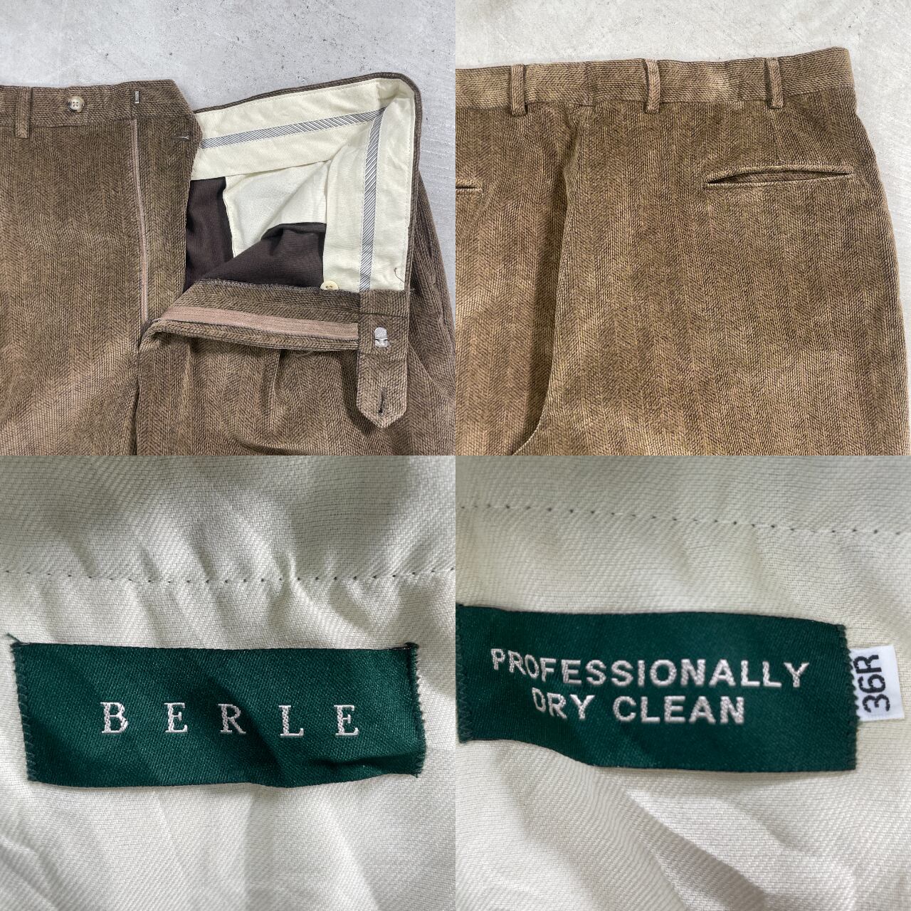 ■BERLE コーデュロイパンツ 柄 2タック メンズW35相当 古着 アメカジ キャラメルブラウン 茶色【コーデュロイパンツ】/ブラウン