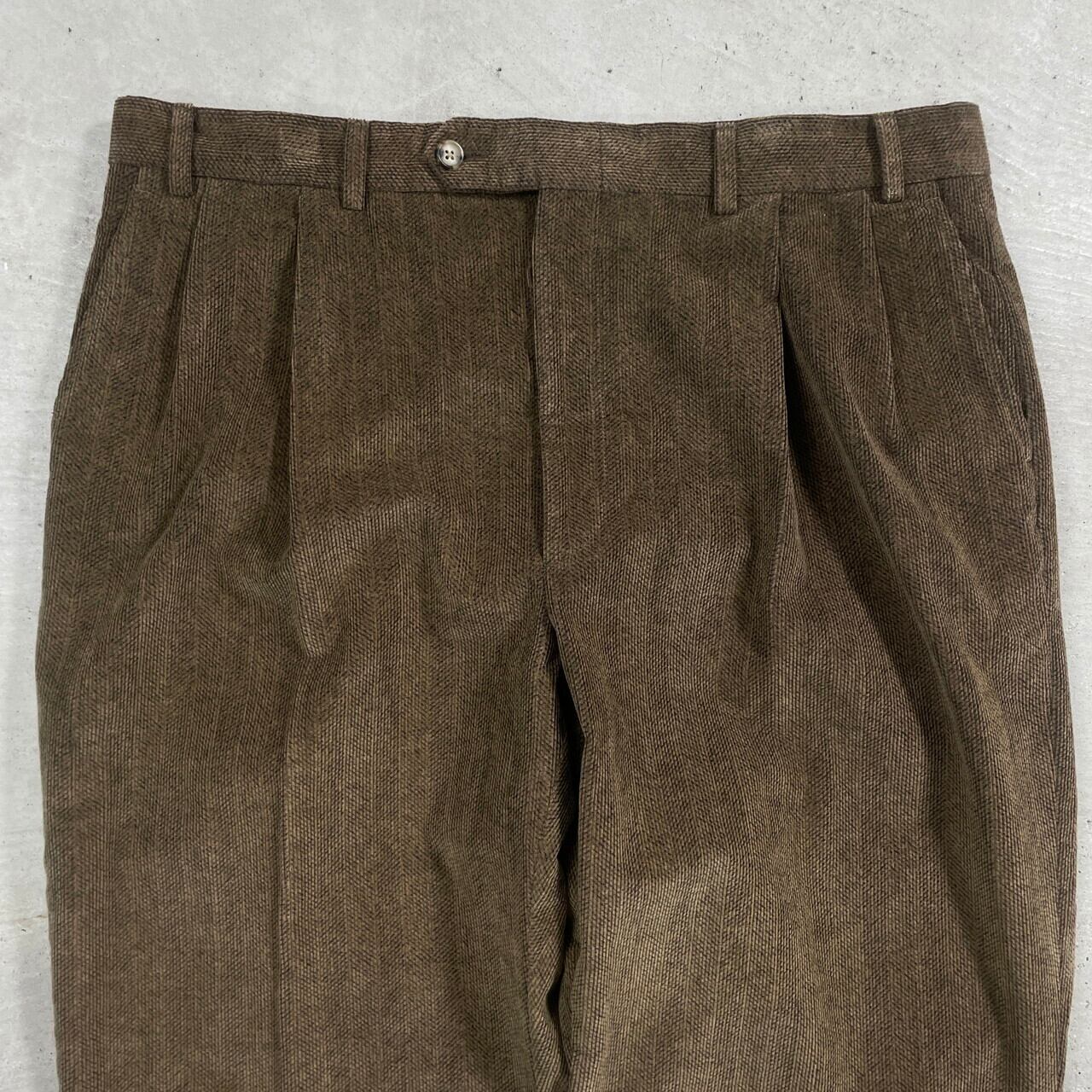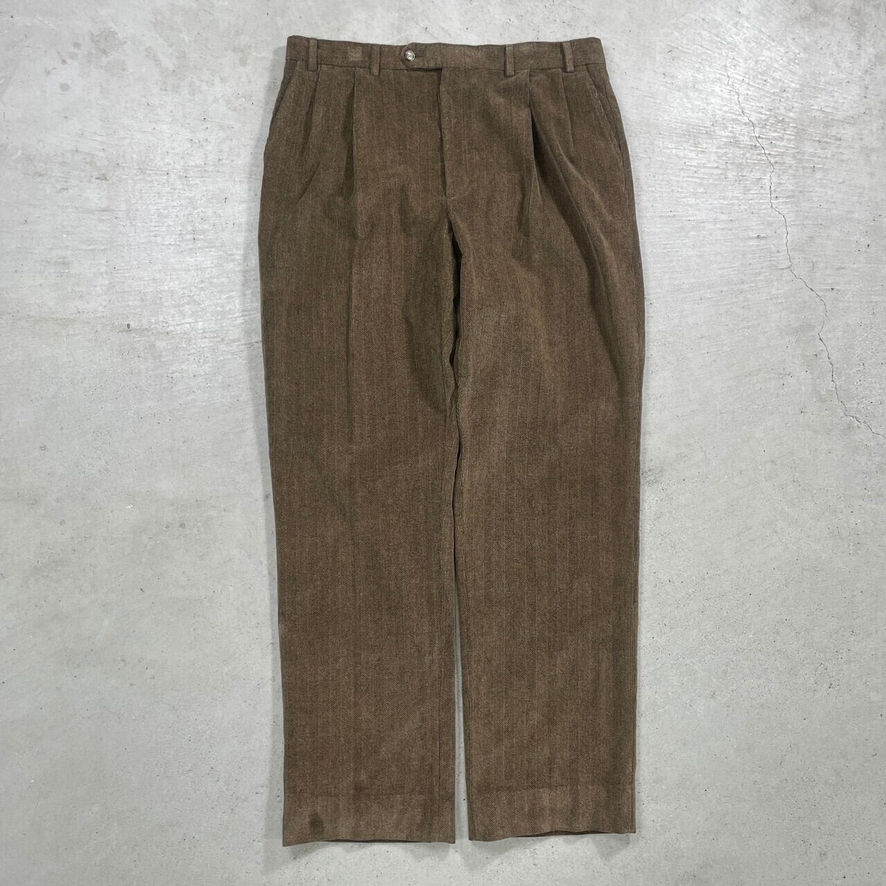 BERLE コーデュロイパンツ 柄 2タック メンズW35相当 古着 アメカジ キャラメルブラウン 茶色【コーデュロイパンツ】/ブラウン