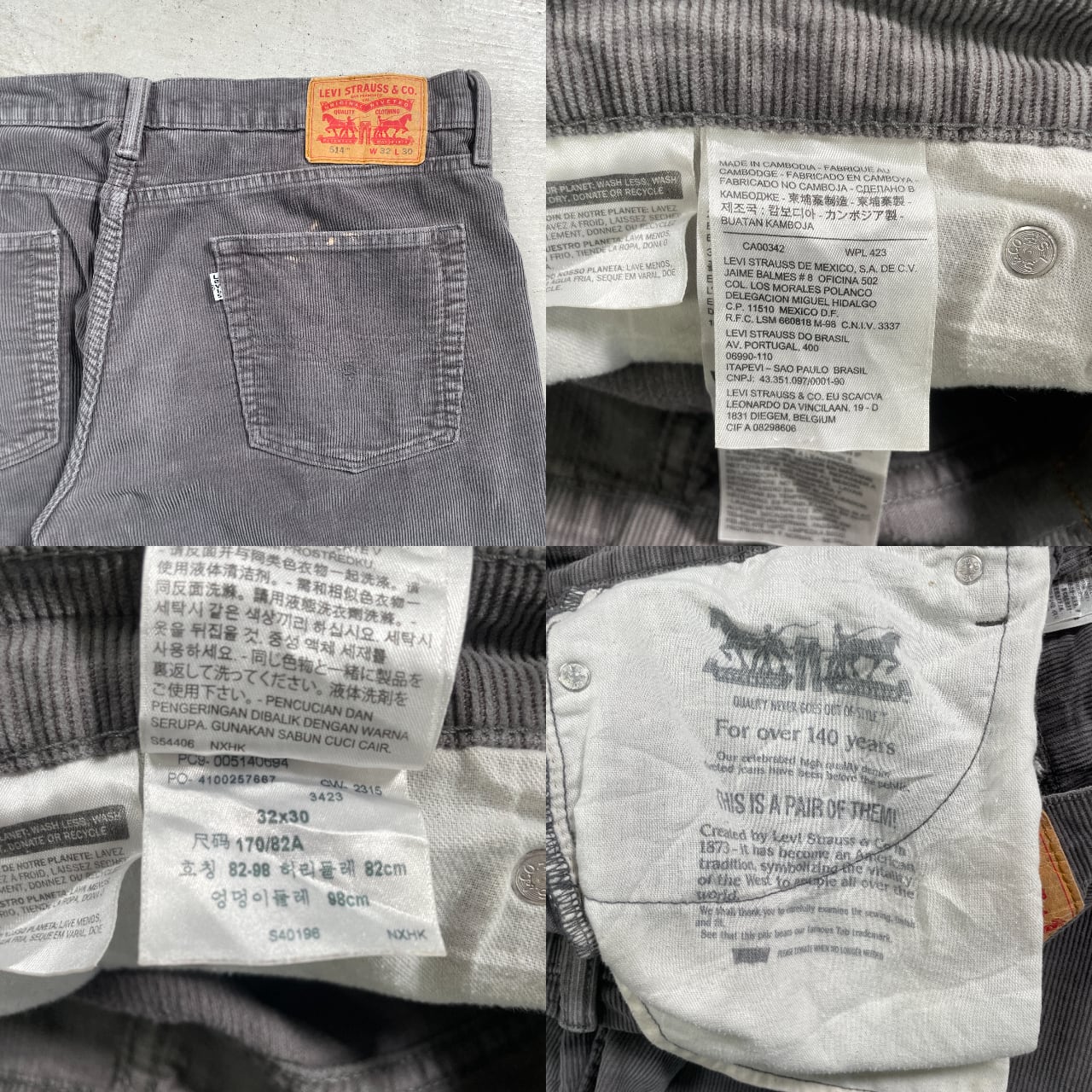 ■Levi's リーバイス 514 コーデュロイパンツ メンズW32 古着 アメカジ 白タブ ホワイトタブ チャコールグレー【デニムパンツ】/グレー