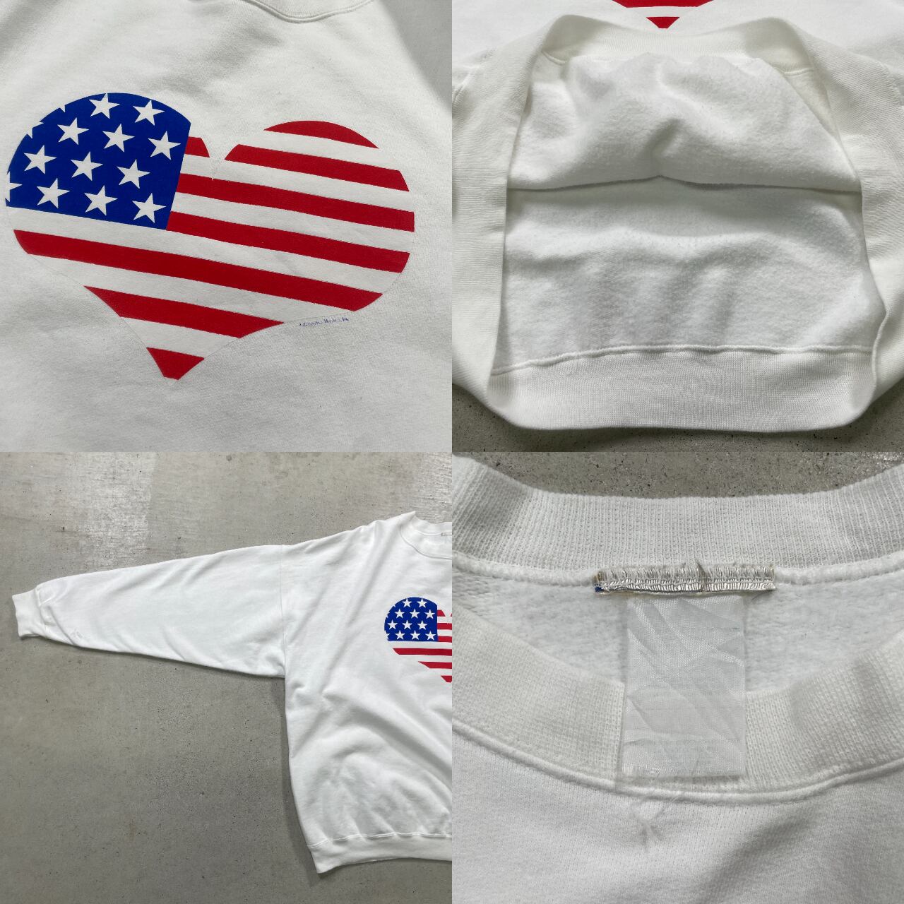 ハート 星条旗 プリント スウェット メンズ2XL相当 古着 US FLAG 白 【スウェット】/ホワイト【WS2501-20】