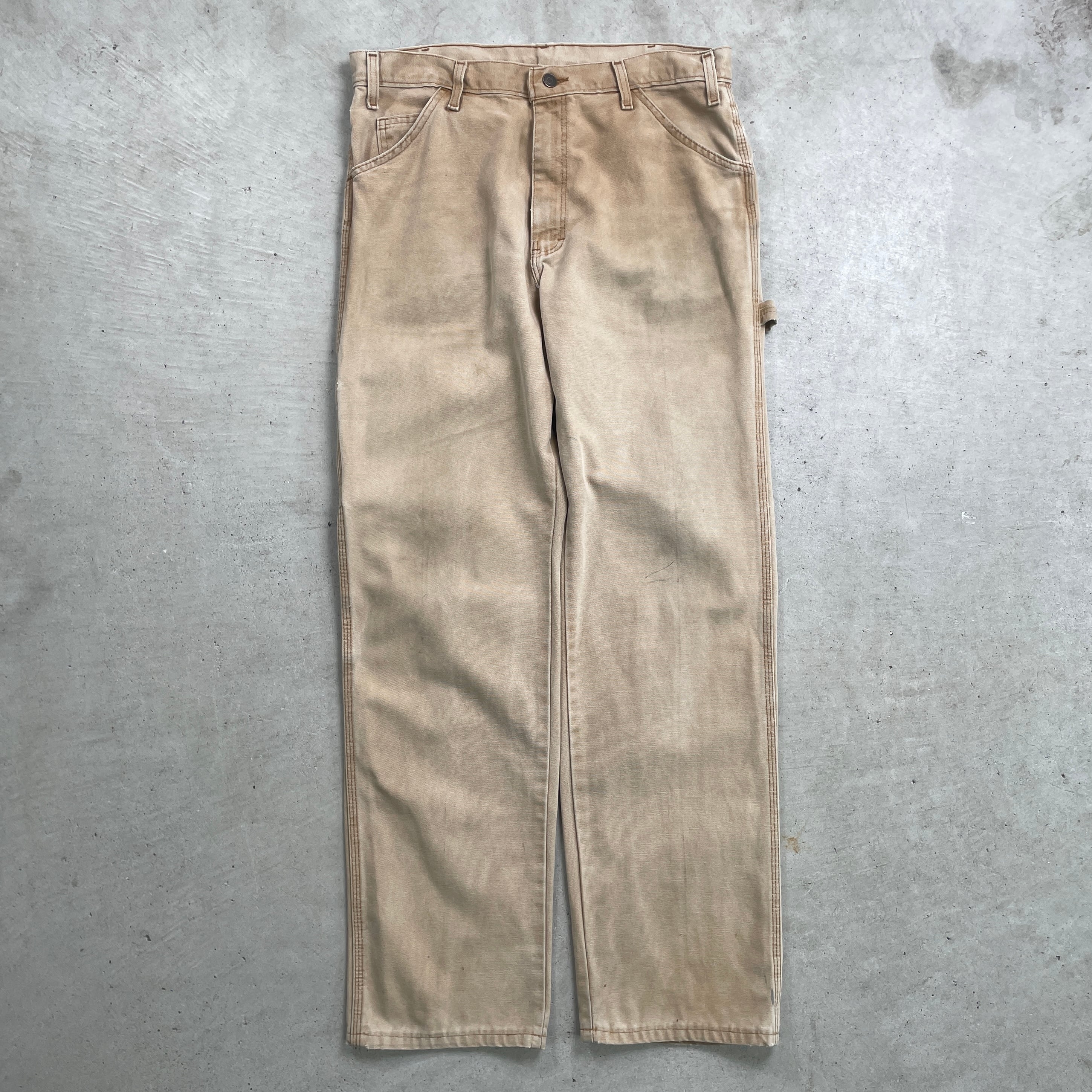 ■Dickies ディッキーズ ダック地 ワークパンツ ペインターパンツ メンズW34 古着 ライトベージュ 【ワークパンツ】/ベージュ