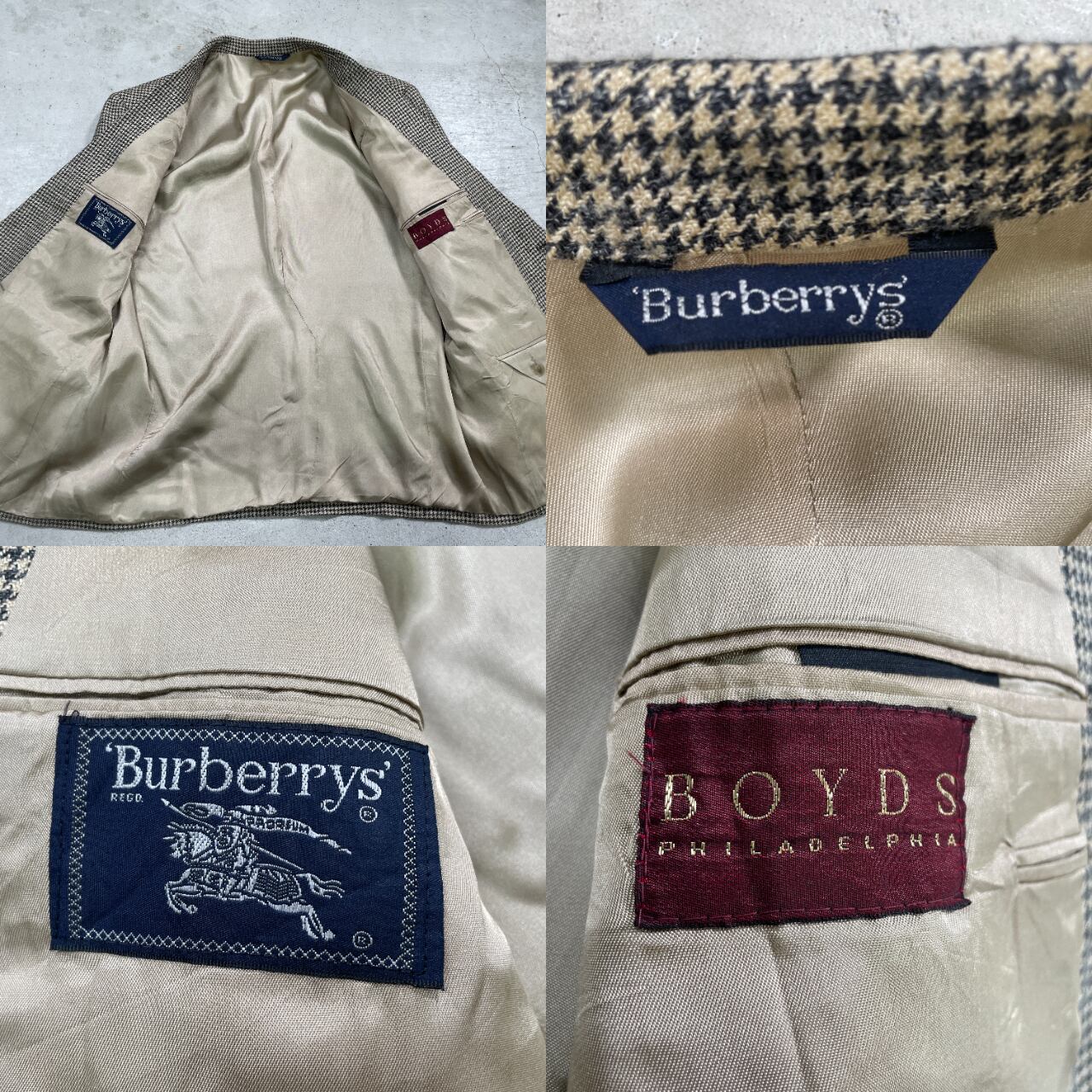 ■~90年代 USA製 Burberrys バーバリー ウールチェック 千鳥格子柄 テーラードジャケット メンズL相当 古着 90s ヴィンテージ VINTAGE BOYDS PHILADELPHIA ライトベージュ グレー 灰色 【テーラードジャケット】/ベージュ