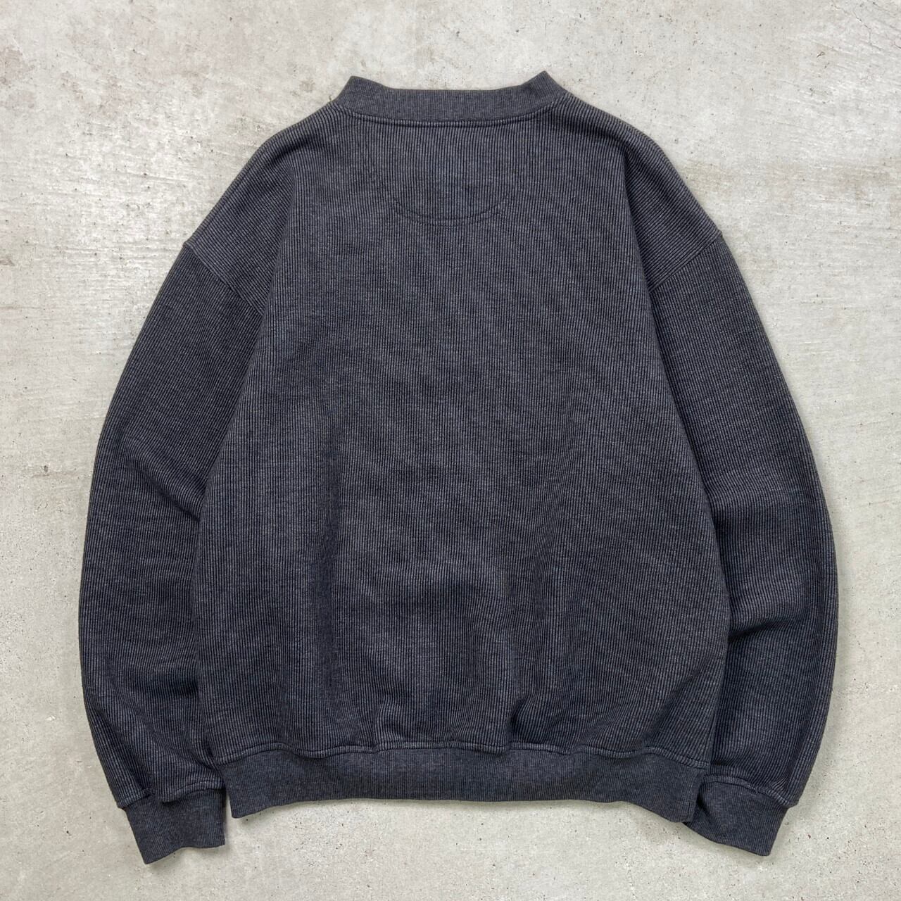 Tri・Mountain ヘンリーネック ワンポイント企業ロゴ刺繍 スウェットシャツ メンズL 古着 トレーナー ハーフボタン アメカジ 裏起毛 ダークグレー 【スウェット】/グレー【SS50-AW】