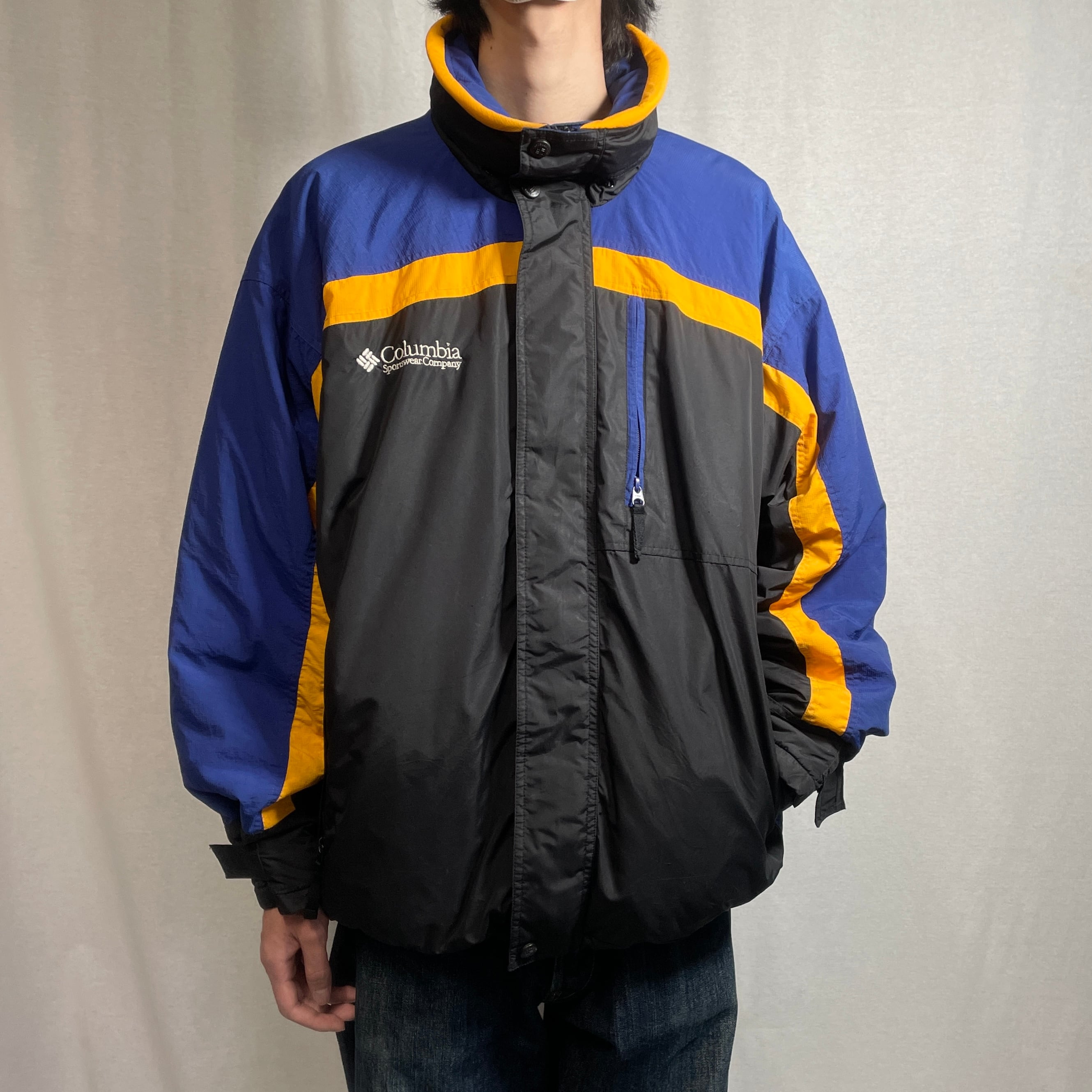 ■ 90年代 Columbia SPORT コロンビア アウトドアジャケット マウンテンジャケット 中綿入り メンズXL 古着 90s ヴィンテージ VINTAGE ワンポイントロゴ刺繍 ドローコード付き フード付き マウンテンパーカー マンパ ブルー イエロー ブラック【アウトドアジャケット】/マルチカラー